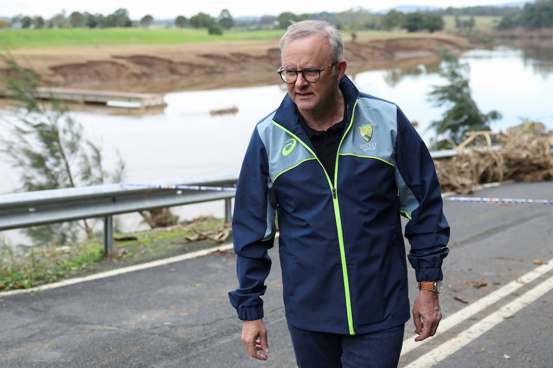 圖集1/4:2025年5月27日,澳大利亞總理安東尼·阿爾巴尼斯視察新南威爾士州温厄姆市洪災地區。路透社/Hollie Adams