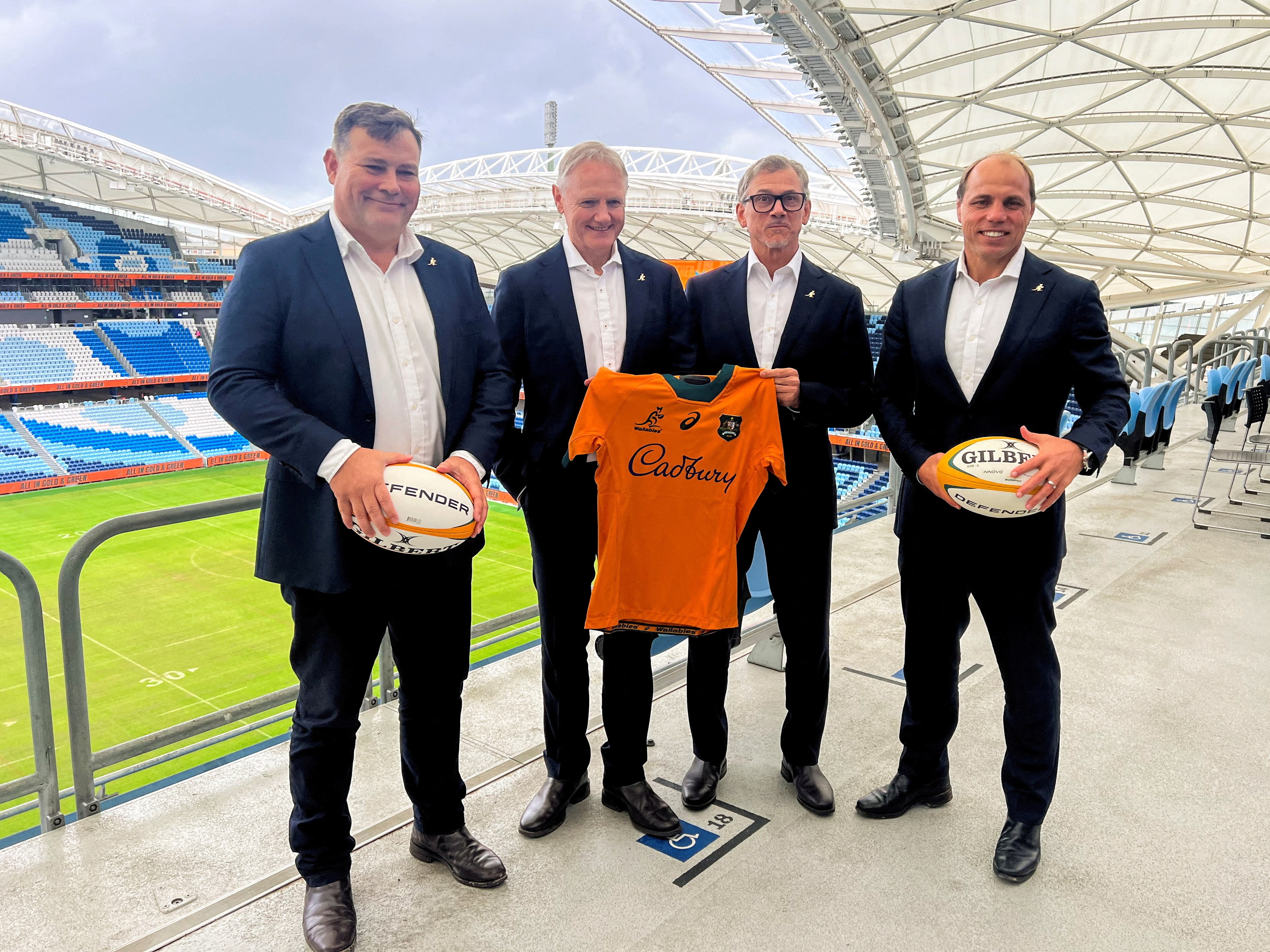 2025年4月30日,澳大利亞橄欖球協會高性能總監彼得·霍恩、候任澳大利亞國家橄欖球聯盟隊教練萊斯·基斯、現任澳大利亞國家橄欖球聯盟隊教練喬·施密特以及澳大利亞橄欖球協會首席執行官菲爾·沃在澳大利亞悉尼足球場合影。路透社/尼克·穆爾維尼/檔案照片悉尼,5月27日(路透社)——澳大利亞橄欖球協會首席執行官菲爾·沃表示,英國和愛爾蘭獅子隊董事會正在考慮一項提案,即在即將到來的系列賽決定性第三場測試賽若以平局收場時,將採用突然死亡加時賽制。