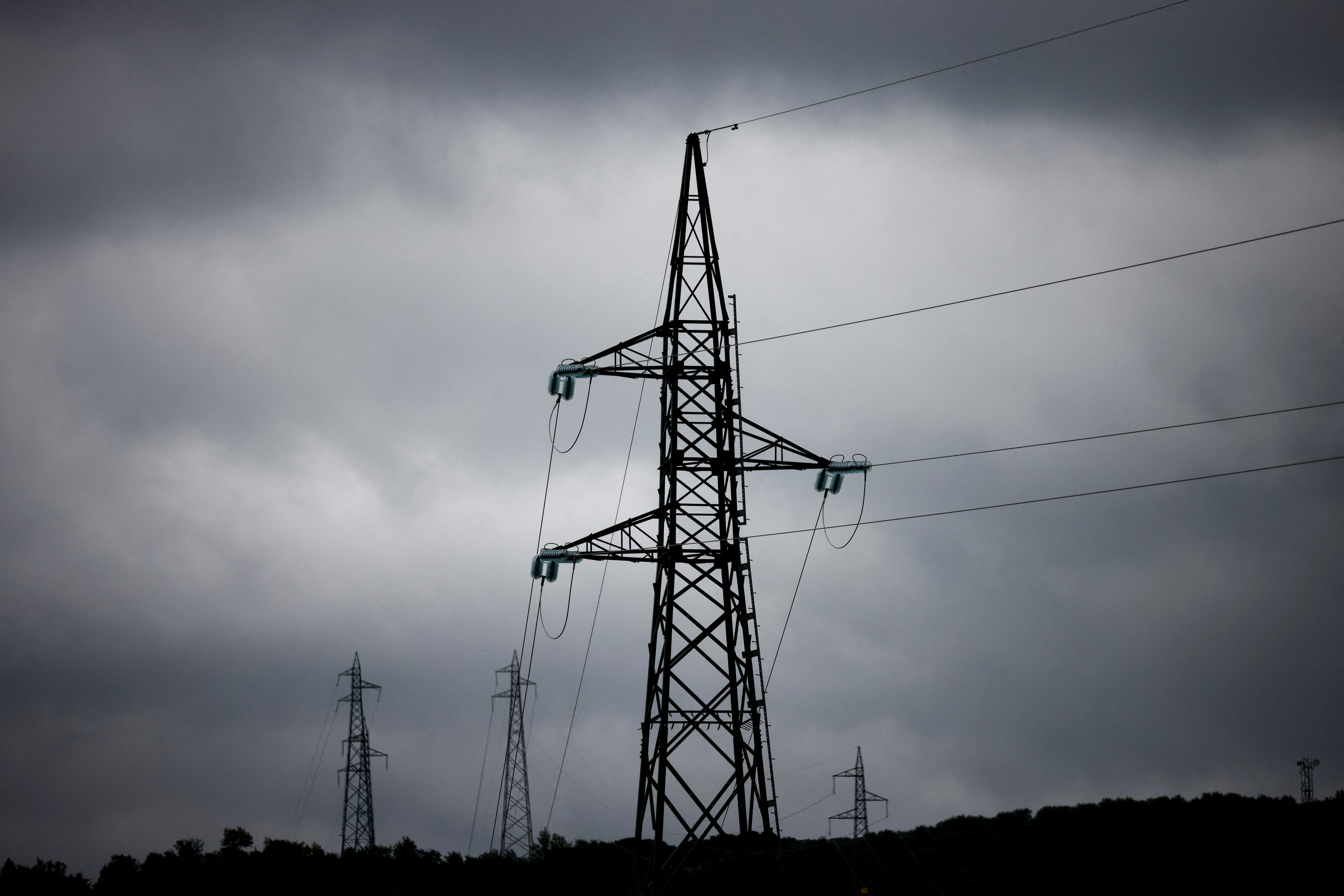 2022年11月16日,意大利佩魯賈附近卡斯泰廖內德拉瓦萊地區的高壓輸電線電力塔。路透社/Yara Nardi/資料圖片路透社米蘭5月27日電 - 意大利主要商業遊説團體Confindustria負責人週二表示,意大利工業需要降低能源成本以維持生存並與歐洲同行有效競爭。