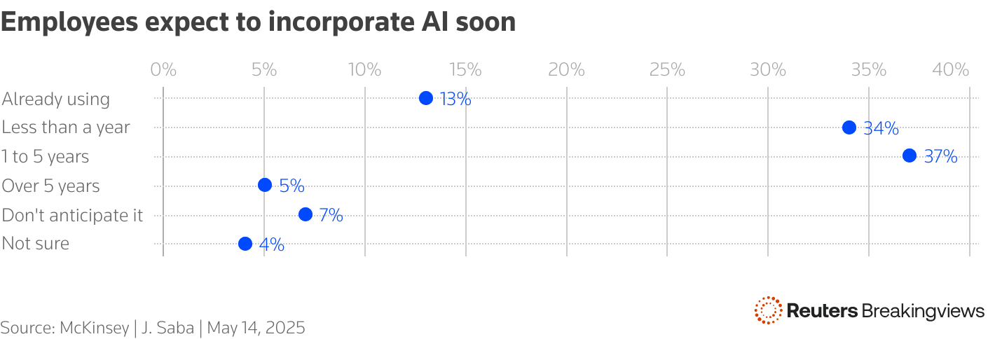展示員工及其對AI期望的調查圖表