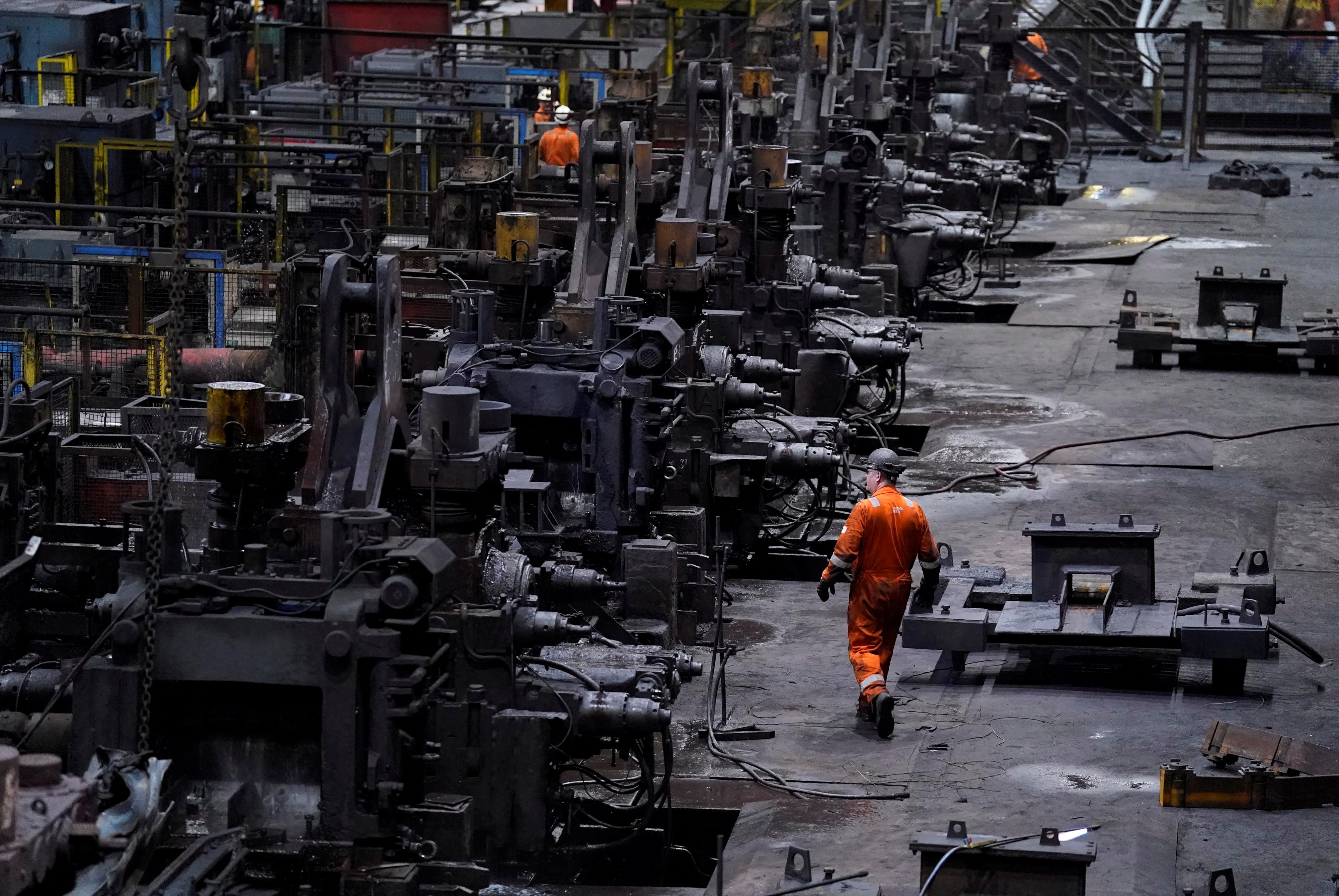 2025年4月17日,英國林肯郡斯肯索普英國鋼鐵公司工廠的工人。Danny Lawson/Pool via REUTERS 波士頓金屬計劃建設工業示範裝置,目標在2030年前實現商業化量產。