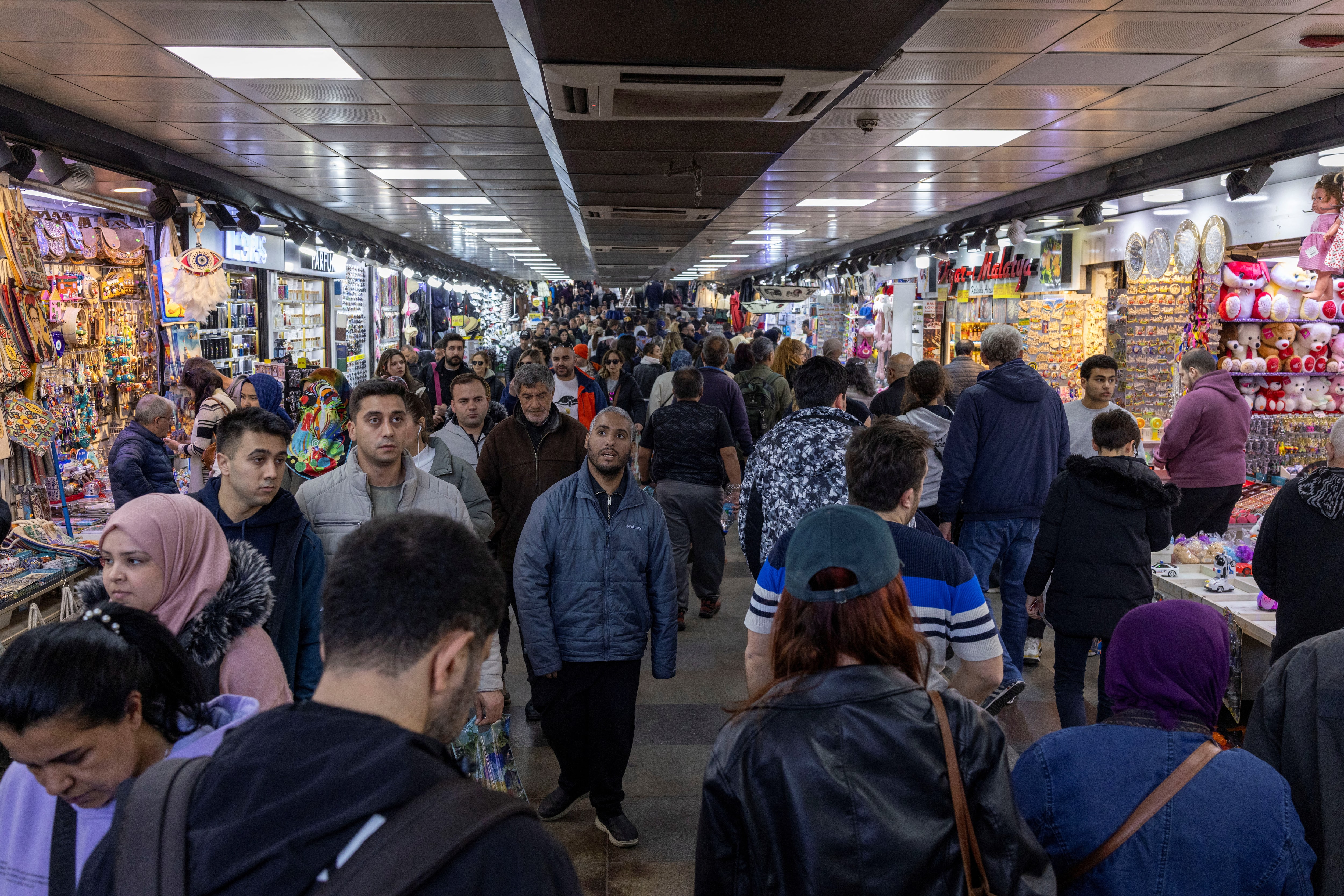 2025年4月25日,土耳其伊斯坦布爾埃米諾努區,人們正在購物。路透社/烏米特·貝克塔斯/資料圖路透伊斯坦布爾5月28日電 - 路透調查顯示,受服裝和水果價格上漲影響,土耳其5月月度通脹率預計為2%,年化通脹率預計將降至36.1%。