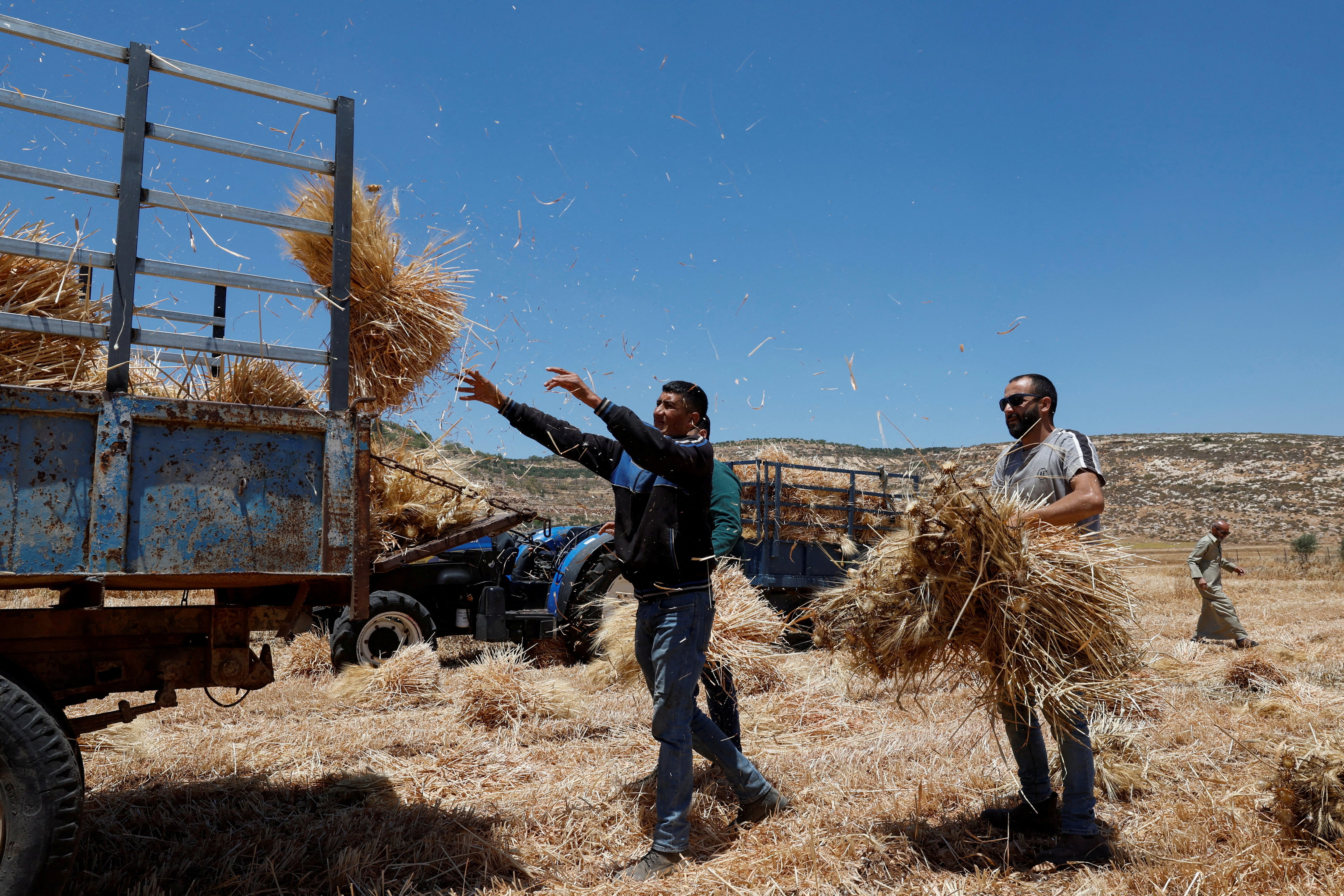 2025年5月28日,在以色列佔領的約旦河西岸拉馬拉附近的Al Mughayyir地區,巴勒斯坦男子在遭遇以色列定居者襲擊後收集小麥。路透社/Mohammed Torokman/檔案照片5月29日(路透社)——以色列財政部長貝扎萊爾·斯莫特里赫週四表示,以色列政府已批准在約旦河西岸新建22個猶太人定居點,此舉可能加深與部分盟友的分歧,這些盟友曾威脅要對進一步擴張實施制裁。極右翼的斯莫特里赫是以色列對約旦河西岸主權的倡導者,他在X平台上發文稱,新定居點將位於約旦河西岸北部地區,但未具體説明位置。