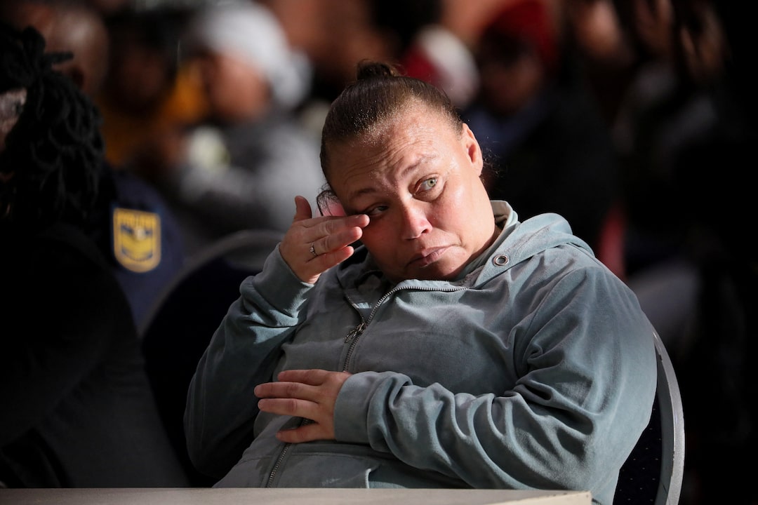 圖集1/4 2025年5月29日,南非薩爾達尼亞灣西開普高等法院,喬斯琳·史密斯的母親凱莉·史密斯在宣判時情緒激動。南非法官在認定史密斯及其兩名同夥綁架並販賣其六歲女兒喬斯琳·史密斯的罪名成立後,對他們進行了宣判。路透社/蘇瑪雅·希沙姆