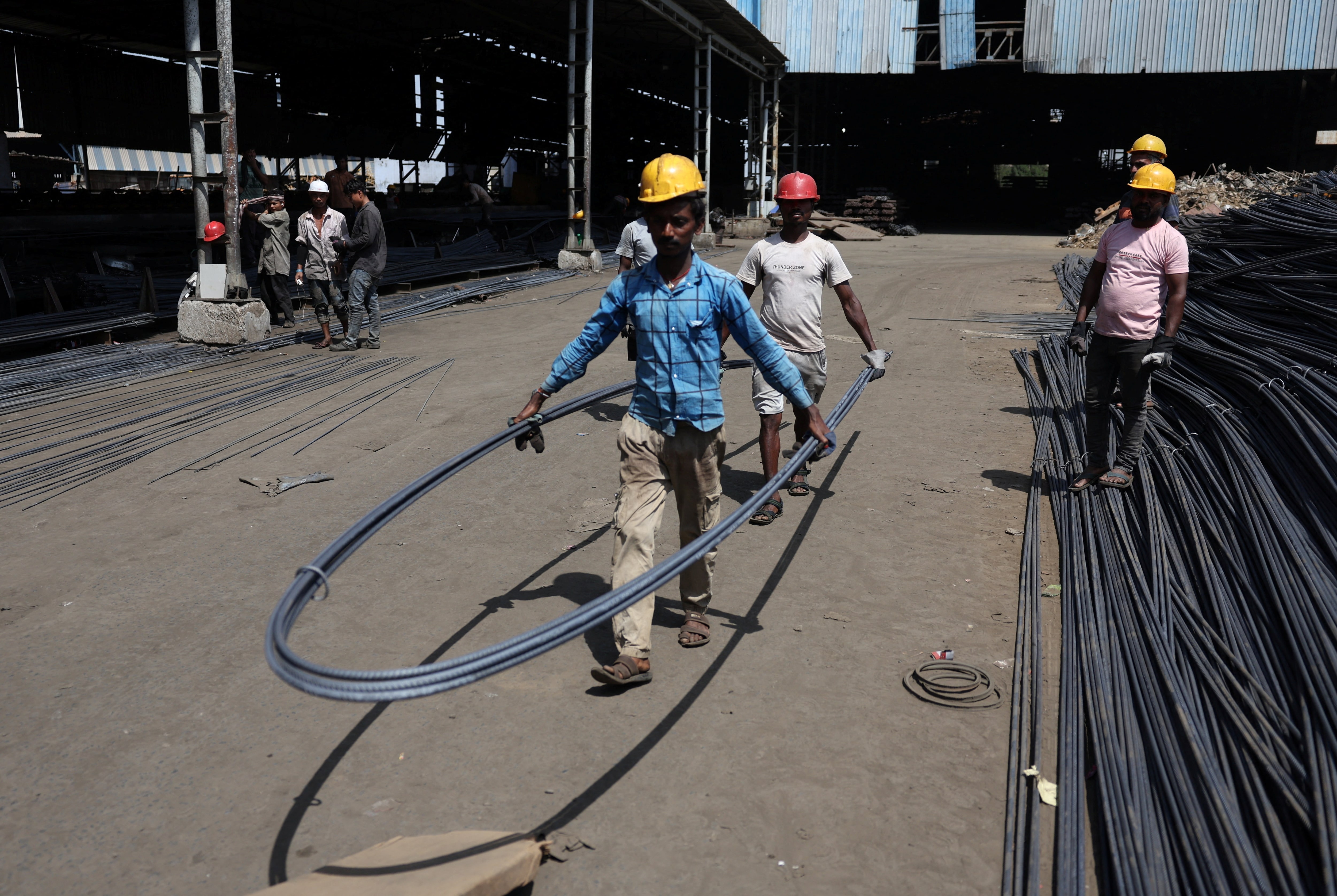 2025年4月7日,印度西部古吉拉特邦維拉姆甘市,工人們正在一家鋼筋製造廠內將螺紋鋼裝車準備發貨。路透社/Amit Dave/檔案照片新德里,5月30日(路透社)——週五公佈的數據顯示,受建築和製造業推動,印度1-3月季度經濟同比增長7.4%,遠超預期。