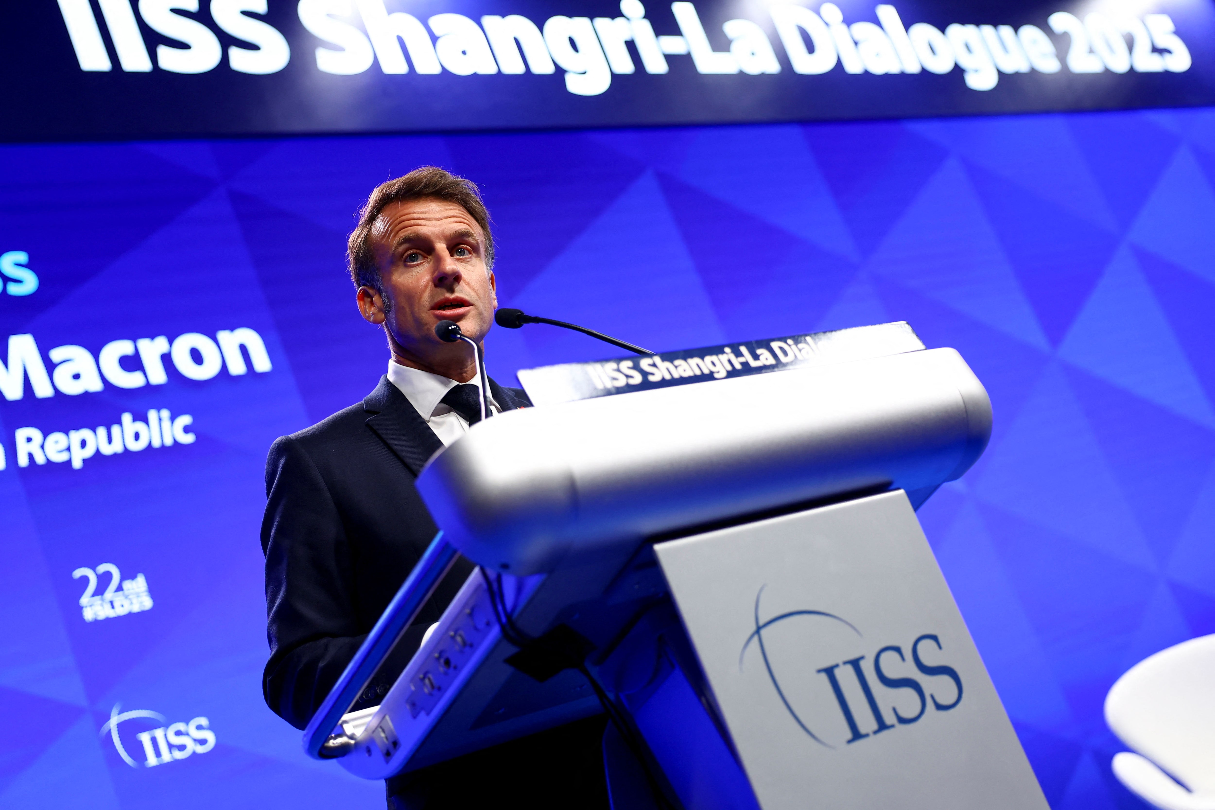 2025年5月30日,法國總統馬克龍在新加坡香格里拉對話會安全峯會上發表主旨演講。路透社/埃德加·蘇新加坡,5月30日(路透社)——法國總統馬克龍週五表示,中美兩個超級大國之間的對立是當前世界面臨的主要風險,他強調巴黎與印太地區夥伴需要建立新的聯盟。