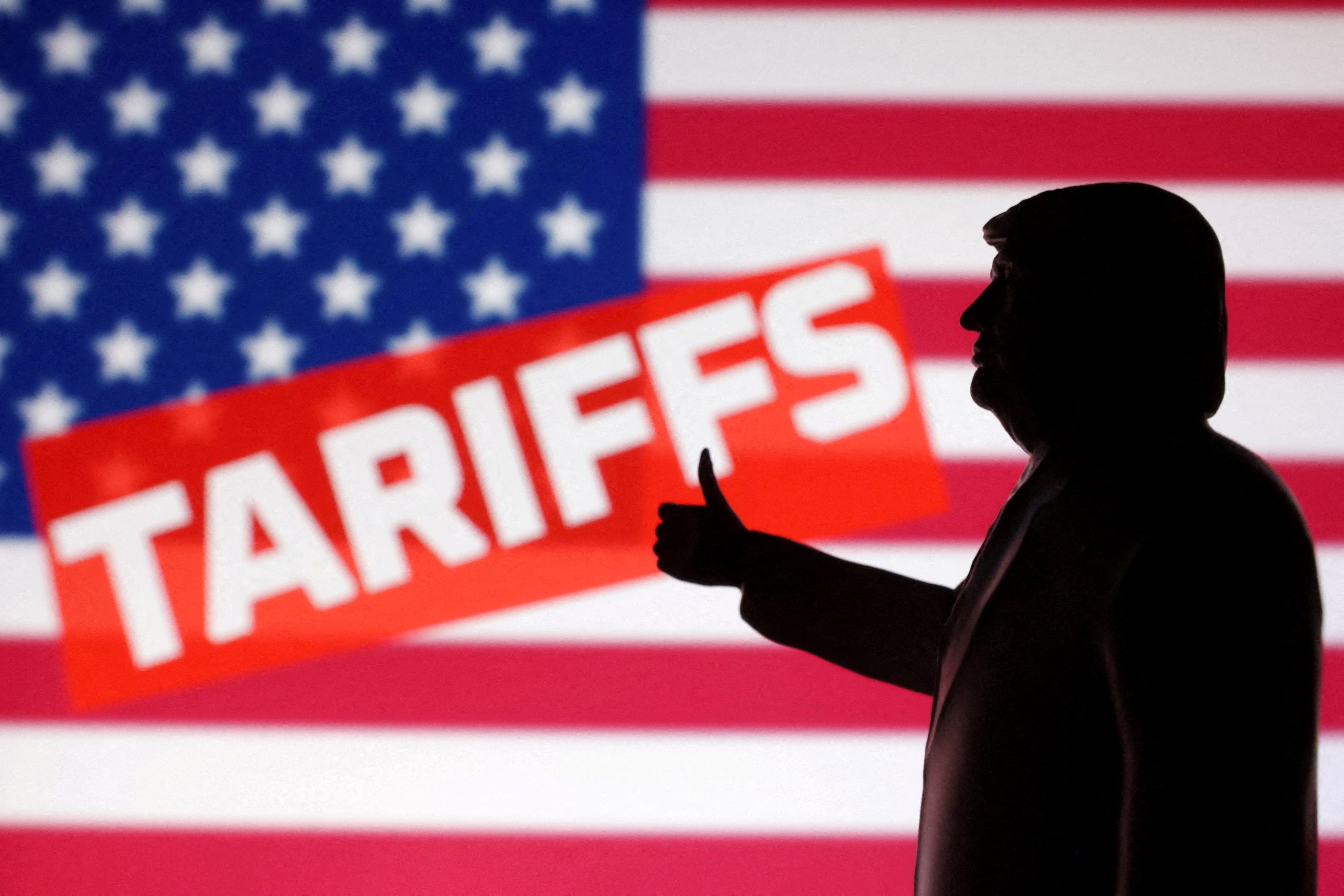 2025年4月17日拍攝的插圖中,展示了一個3D打印的微型模型,描繪了美國總統唐納德·特朗普、美國國旗和“關税”一詞。路透社/Dado Ruvic/插圖/檔案照片5月30日(路透社)— 美國總統唐納德·特朗普關税政策的反覆變化不僅震動了全球金融市場,也讓投資者經歷了一場過山車般的旅程。企業正在計算貿易戰的成本,路透社分析顯示,目前估計因銷售額下降和費用增加而造成的損失超過340億美元。路透社關税觀察簡報是您瞭解全球貿易和關税最新動態的每日指南。在此註冊。