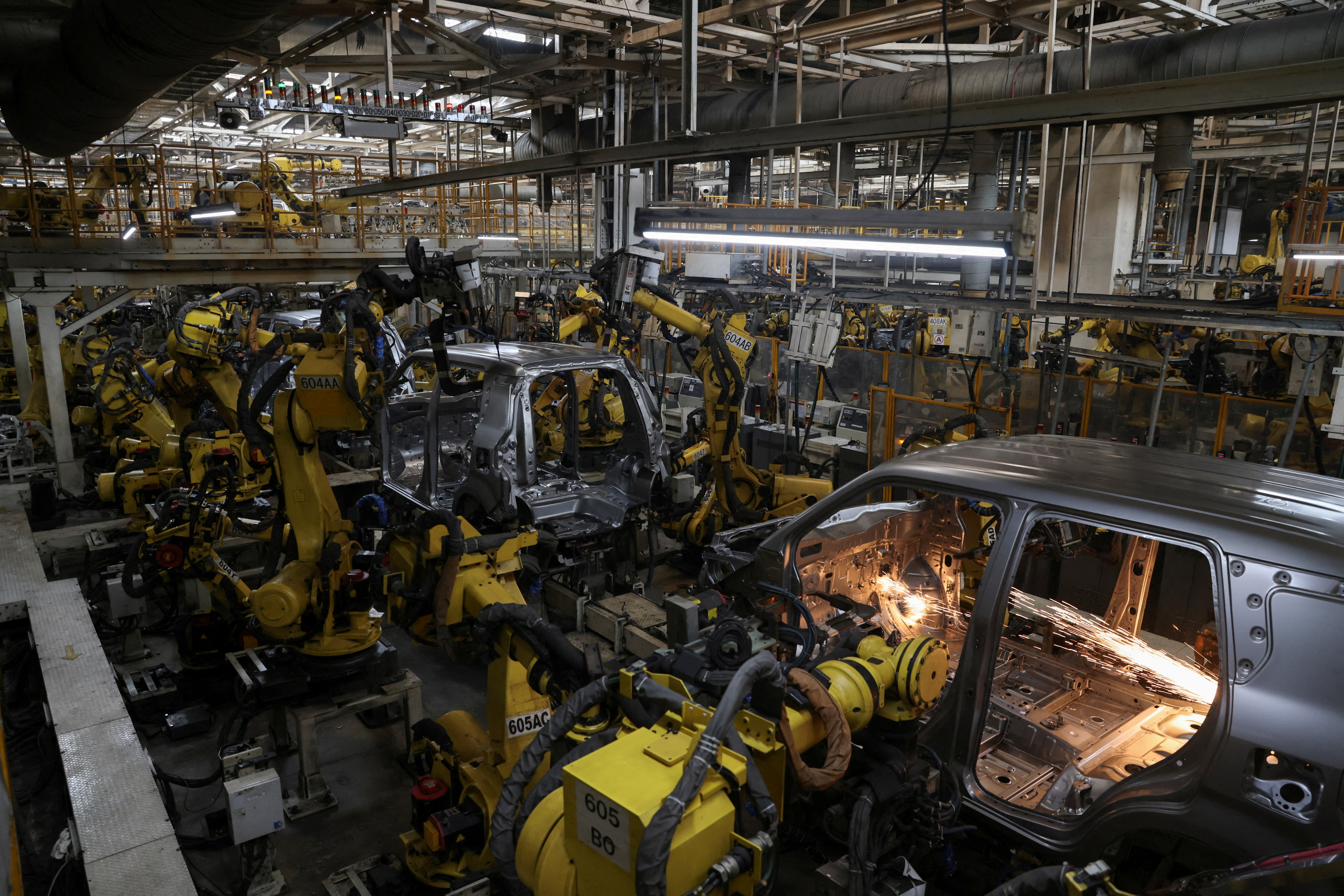 2023年9月26日,印度北部哈里亞納邦馬魯蒂鈴木製造廠內,機器人正在焊接汽車面板。路透社/阿努什裏·法德納維斯/資料圖片購買授權許可,打開新標籤頁新德里,6月12日(路透社)——印度外交部發言人週四表示,在中國限制稀土出口後,印度正與中國接觸以建立"貿易供應鏈的可預測性"。