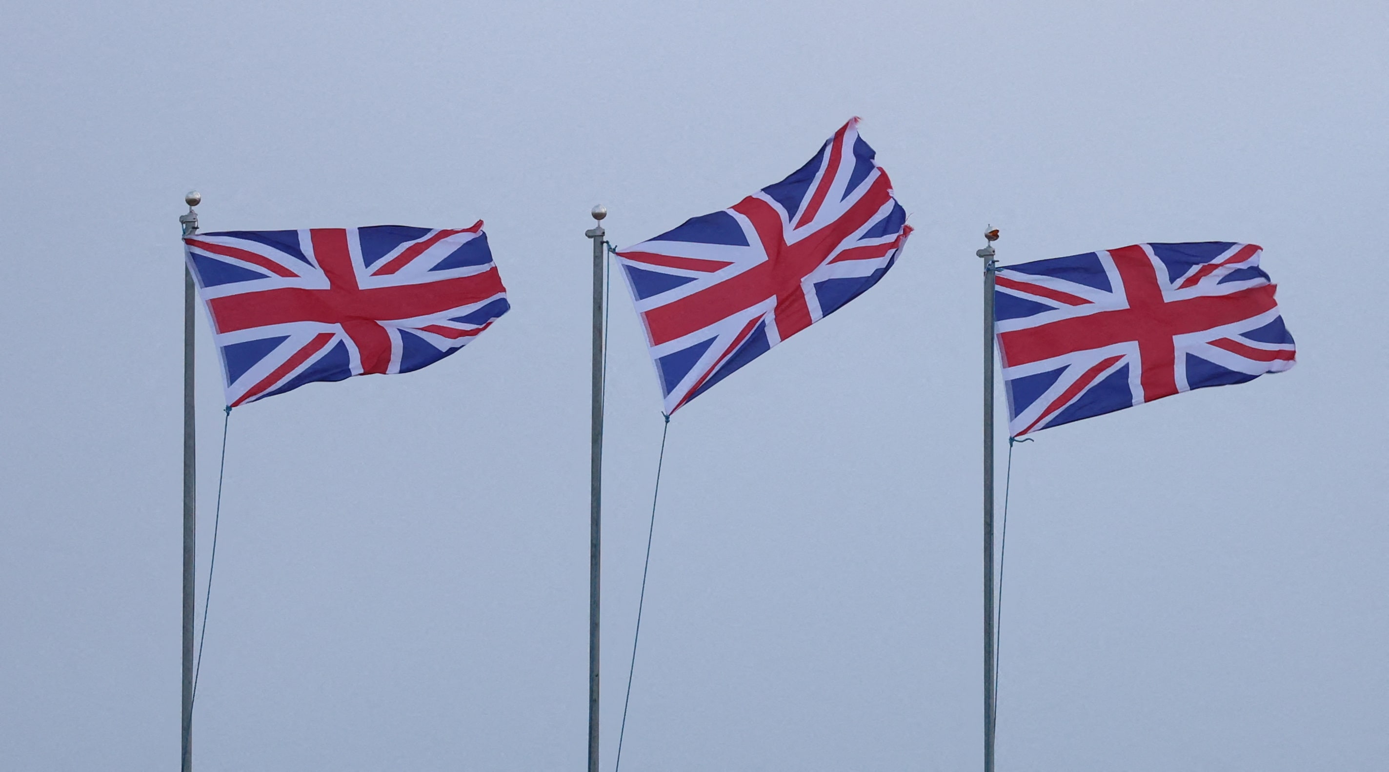 2024年8月23日,英國新布萊頓佩奇羅克堡外,英國國旗在風暴"莉蓮"帶來的強風中飄揚。路透社/菲爾·諾布爾/資料圖片購買授權許可,打開新標籤頁路透倫敦6月12日電 - 英國週四表示理解美國總統特朗普政府決定對AUKUS潛艇協議啓動正式審查,並強調倫敦方面堅持認為該項目對和平與安全至關重要。