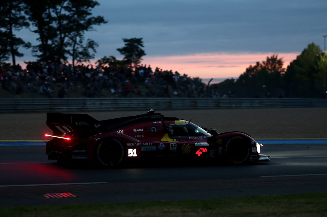 2025年6月15日,法國勒芒薩爾特賽道,勒芒24小時耐力賽期間,法拉利AF Corse車隊的亞歷山德羅·皮爾·圭迪、詹姆斯·卡拉多和安東尼奧·吉奧維納茲。路透社/斯特凡·馬赫 購買授權許可,打開新標籤頁路透社6月15日電 - 衞冕冠軍法拉利車隊在勒芒24小時耐力賽中正朝着三連冠邁進,他們在薩爾特賽道領跑了第93屆比賽,從夜晚持續到週日早晨。