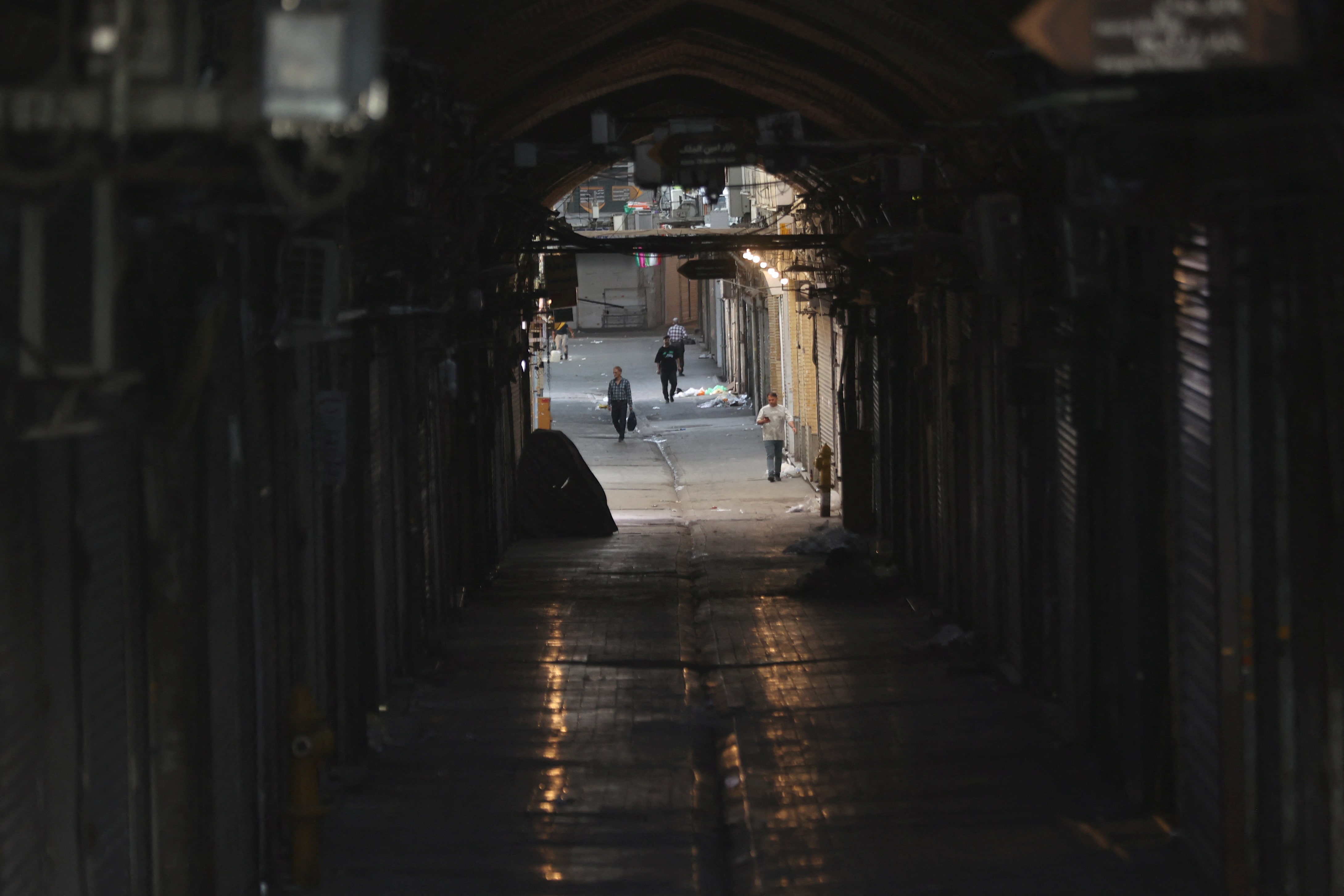 2025年6月15日,伊朗德黑蘭市中心,以色列襲擊伊朗後,德黑蘭大巴扎的關閉店鋪。Majid Asgaripour/WANA(西亞通訊社)通過路透社 編輯提示 - 本圖片由第三方提供 購買授權 權利,打開新標籤頁迪拜,6月16日(路透社)——一位瞭解溝通情況的官員週日告訴路透社,伊朗已告知調解國卡塔爾和阿曼,在以色列攻擊下,伊朗不準備談判停火。雙方的新一輪攻擊加劇了更廣泛衝突的擔憂。