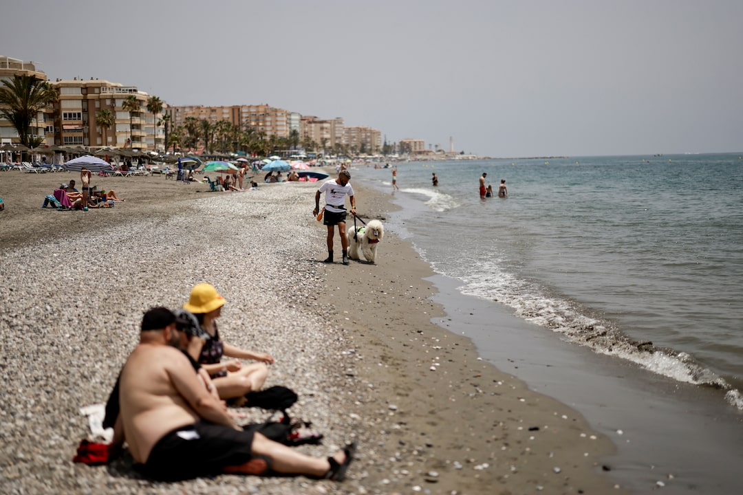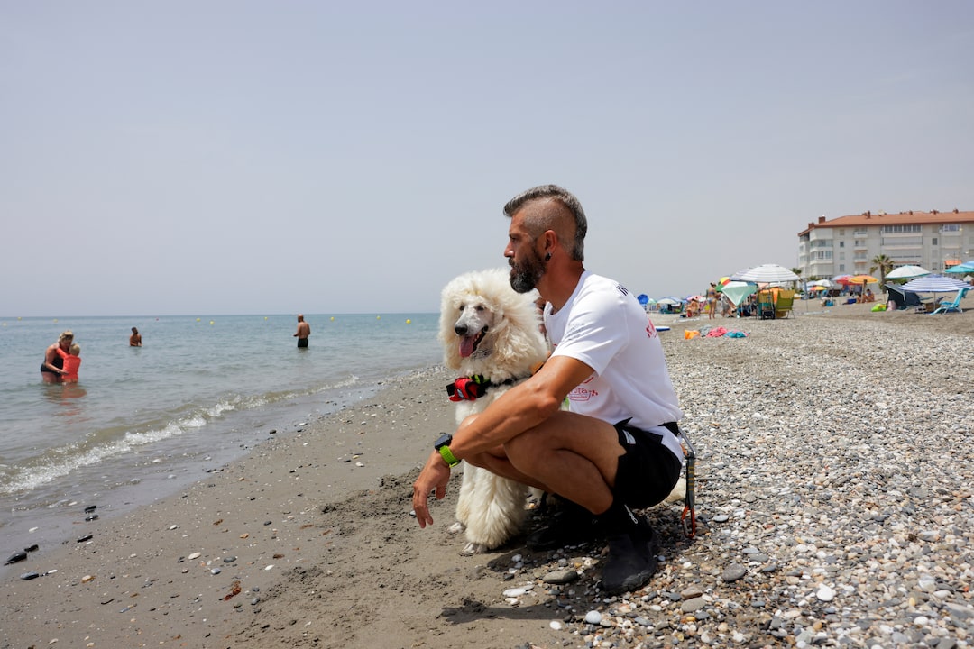 2025年6月14日,西班牙南部託羅克斯的拉斯林德斯海灘夏季工作首日,2歲雄性標準貴賓犬尼洛在救援訓練中戲水後坐在岸邊。作為全球K9訓練師米格爾·桑切斯-梅倫西亞諾為救援隊新增的最新成員,這隻狗狗正在接受專業培訓。路透社/喬恩·納茲卡