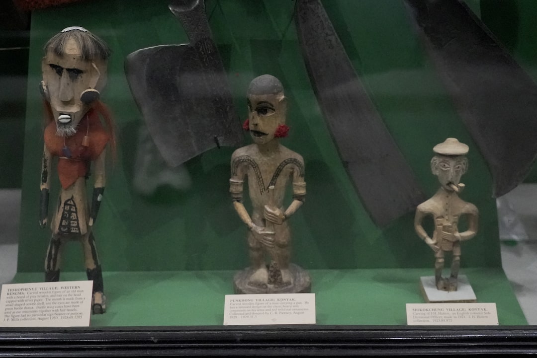 2025年6月13日,英國牛津皮特河博物館展出的那加文物之一(共5件)。路透社/Marissa Davison