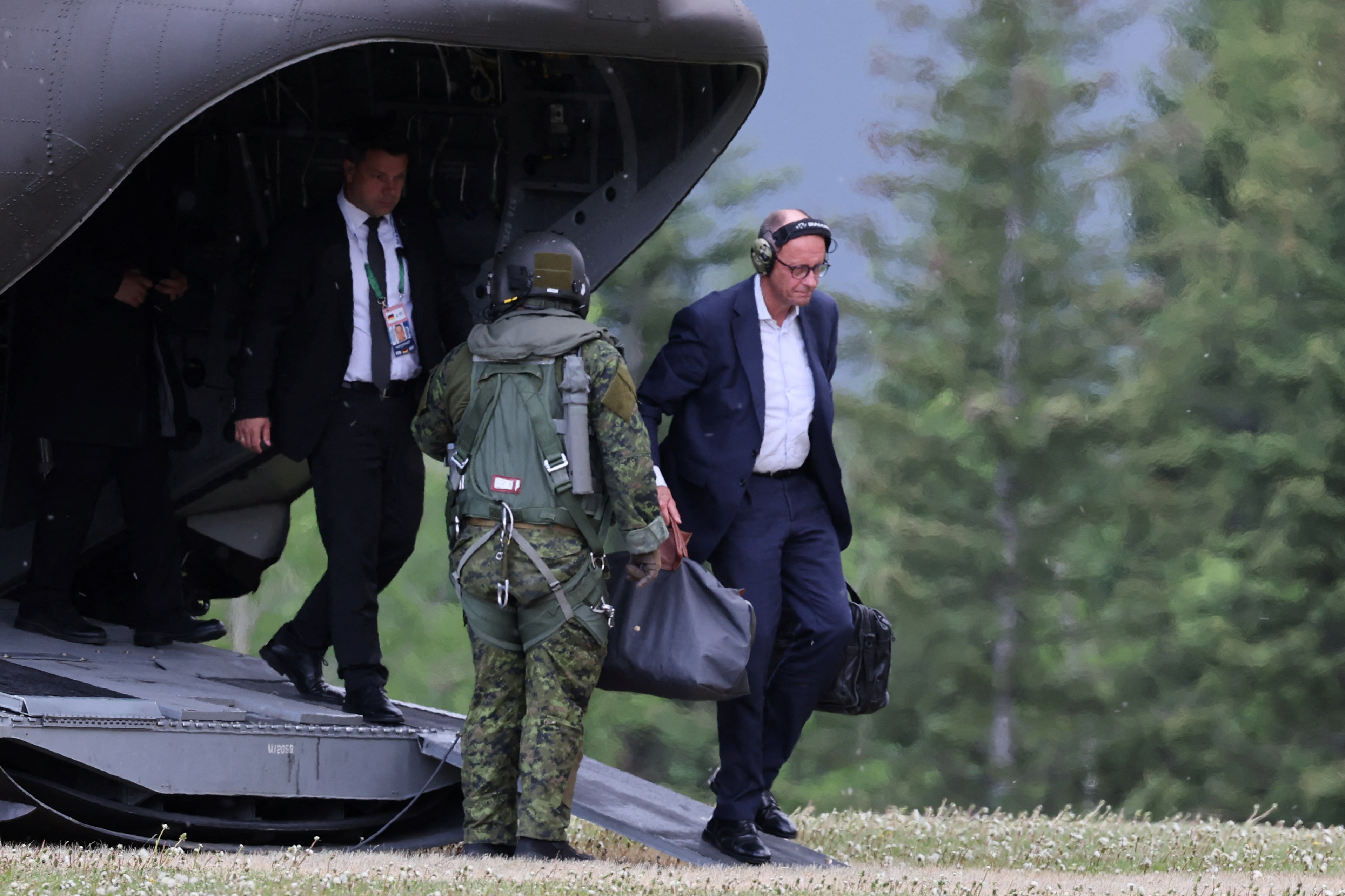 德國總理弗里德里希·梅爾茨於2025年6月15日搭乘加拿大軍方直升機抵達阿爾伯塔省卡納納斯基斯,參加七國集團領導人峯會。路透社/克里斯·赫爾格倫/泳池 購買授權 權利, 打開新標籤頁卡納納斯基斯,6月16日(路透社)——在加拿大卡納納斯基斯舉行的七國集團峯會正式開幕前,德國總理弗里德里希·梅爾茨已與其他歐洲與會者進行了協調。據德國政府消息人士透露,他於晚間與法國總統埃馬紐埃爾·馬克龍、英國首相基爾·斯塔默、意大利總理喬治婭·梅洛尼以及東道主馬克·卡尼進行了磋商。