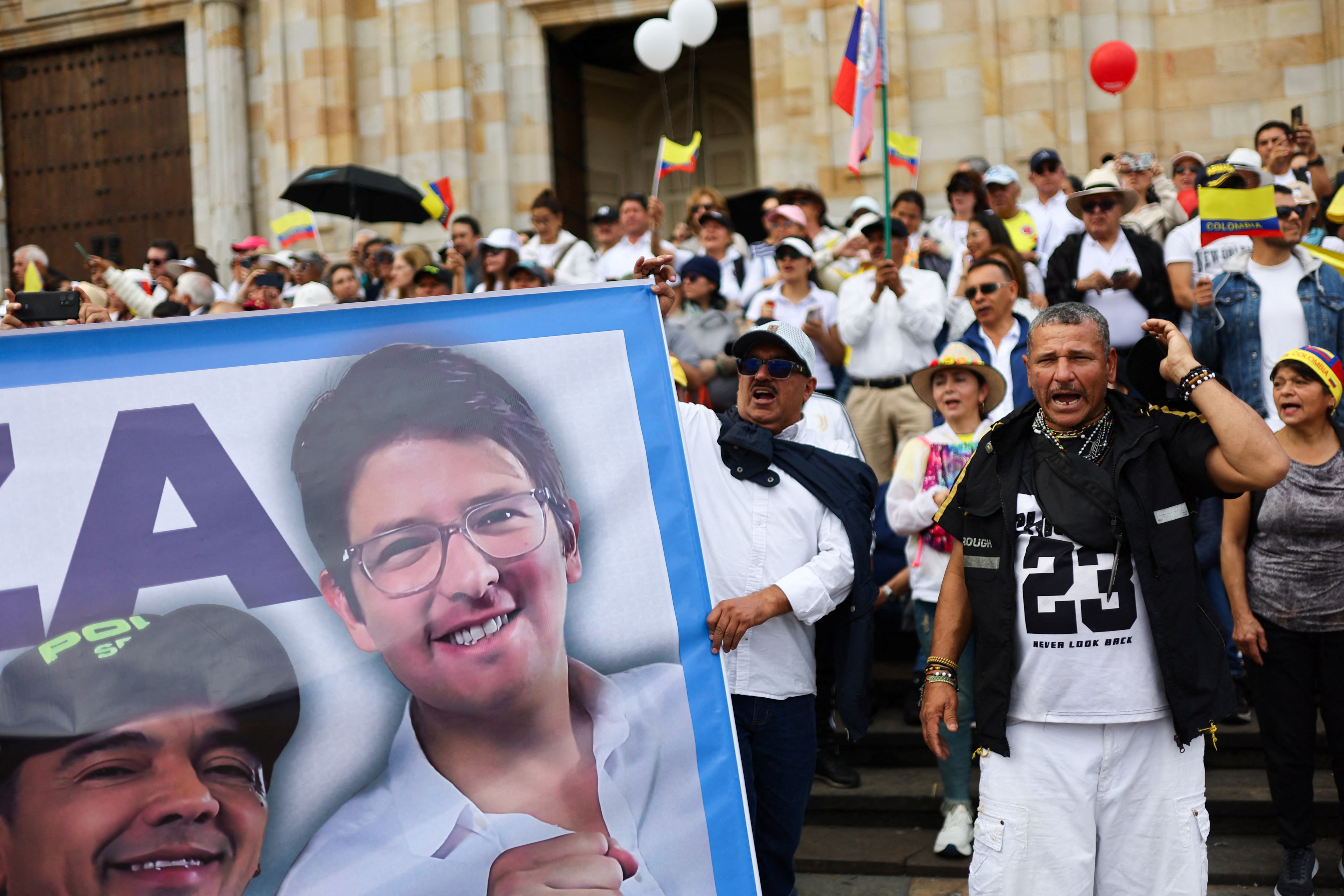 2025年6月15日,哥倫比亞反對派民主中心黨蔘議員米格爾·烏里韋·圖爾拜遇襲後,民眾在首都波哥大參加靜默遊行。路透社/路易莎·岡薩雷斯 購買授權 許可,打開新標籤頁6月16日(路透社)——收治醫院週一表示,哥倫比亞參議員米格爾·烏里韋在接受腦出血手術後病情極其危重。