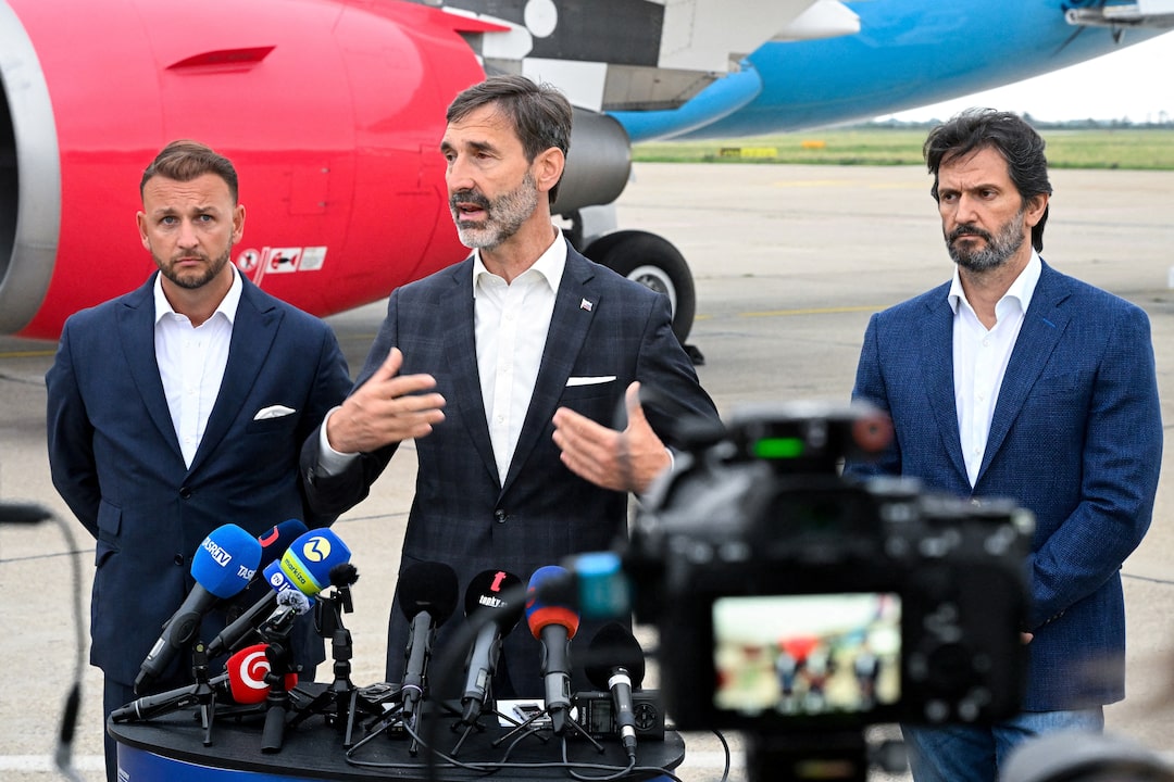 2025年6月16日,在斯洛伐克布拉迪斯拉發的M.R.斯特凡尼克機場,斯洛伐克外交部長尤拉伊·布拉納爾、內政部長馬圖什·蘇塔伊·埃斯托克以及副總理兼國防部長羅伯特·卡利尼亞克等待從以色列撤離的斯洛伐克人、捷克人、奧地利人和斯洛文尼亞人從安曼的航班下機。此前,他們因伊朗對以色列的導彈襲擊而離開該地區。路透社/拉多萬·斯托克拉薩
