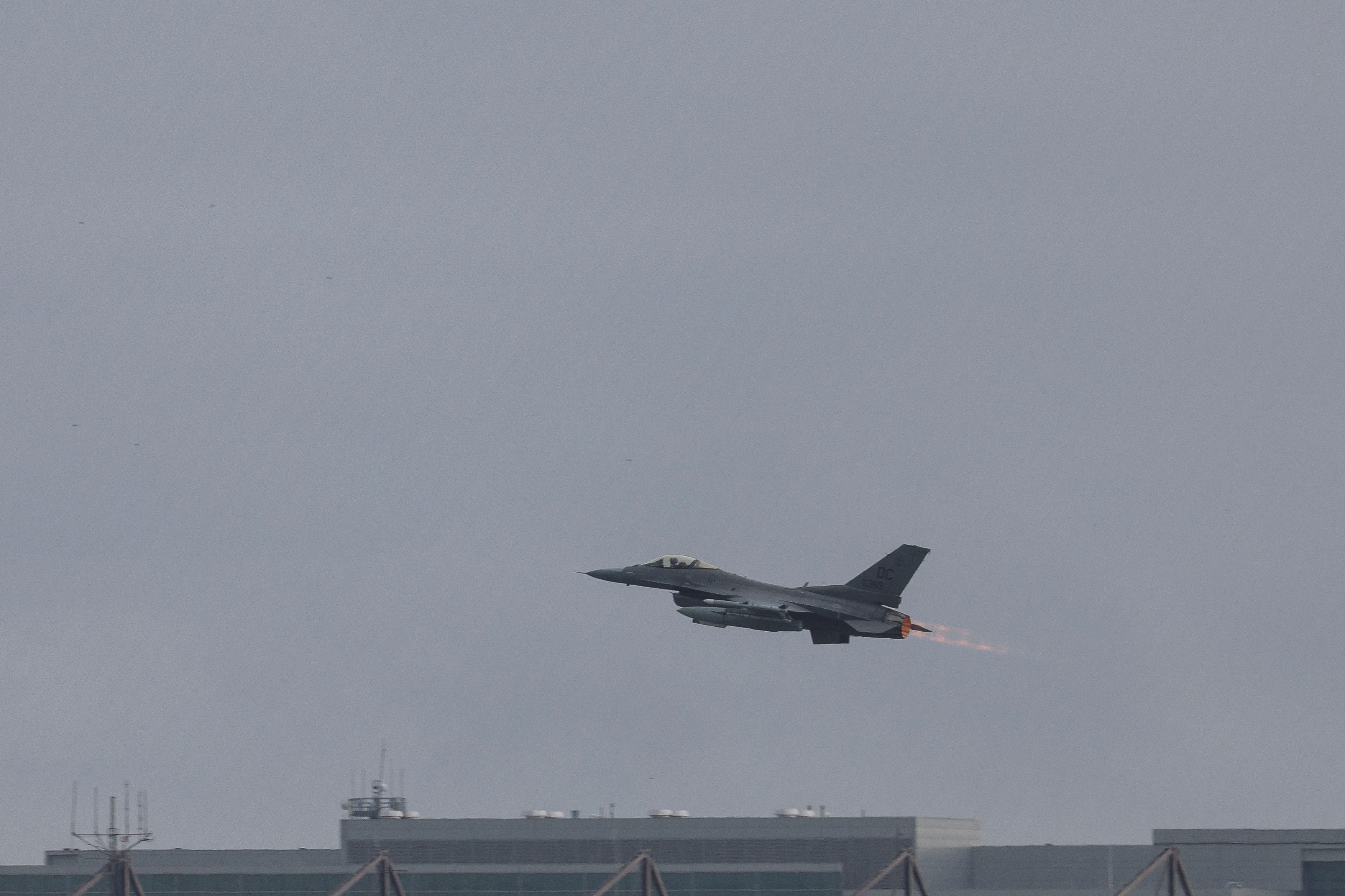 2024年10月3日,美國馬里蘭州安德魯斯聯合基地,美國空軍F-16"獵鷹"戰鬥機起飛。路透社/Tom Brenner/資料圖片購買授權許可,打開新標籤頁華盛頓,6月17日(路透社)- 三位美國官員表示,隨着以色列與伊朗戰爭持續,美軍正在向中東部署更多戰鬥機,並延長其他戰機的部署時間,以增強該地區的軍事力量。其中一位官員表示,部署的飛機包括F-16、F-22和F-35戰鬥機。