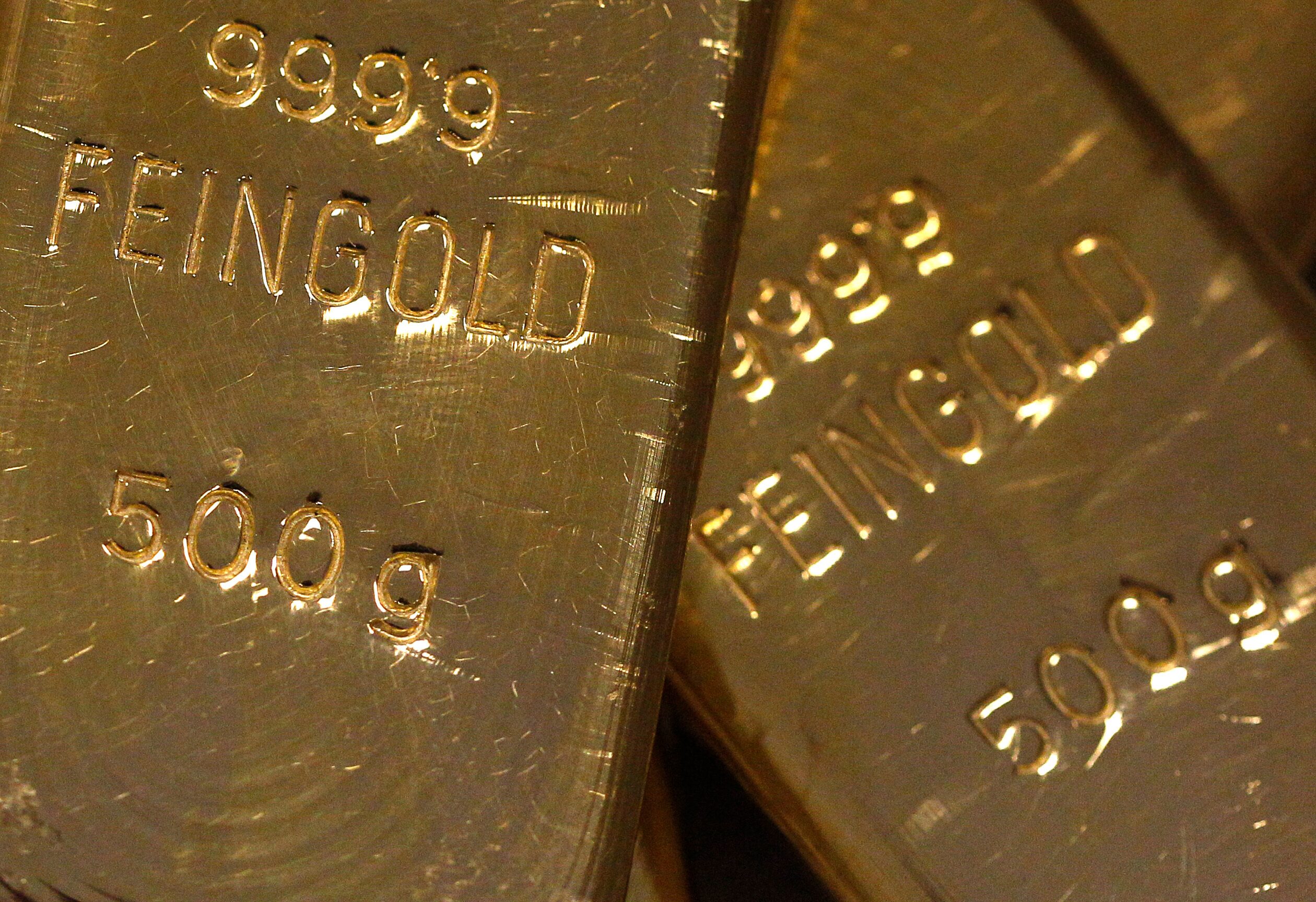 路透社檔案照片中展示的金條。購買許可權,打開新標籤頁6月18日(路透社)— 週三黃金價格下跌,因投資者在美聯儲(美國央行)貨幣政策決議公佈前避免大額押注,同時關注以色列與伊朗衝突的進展。