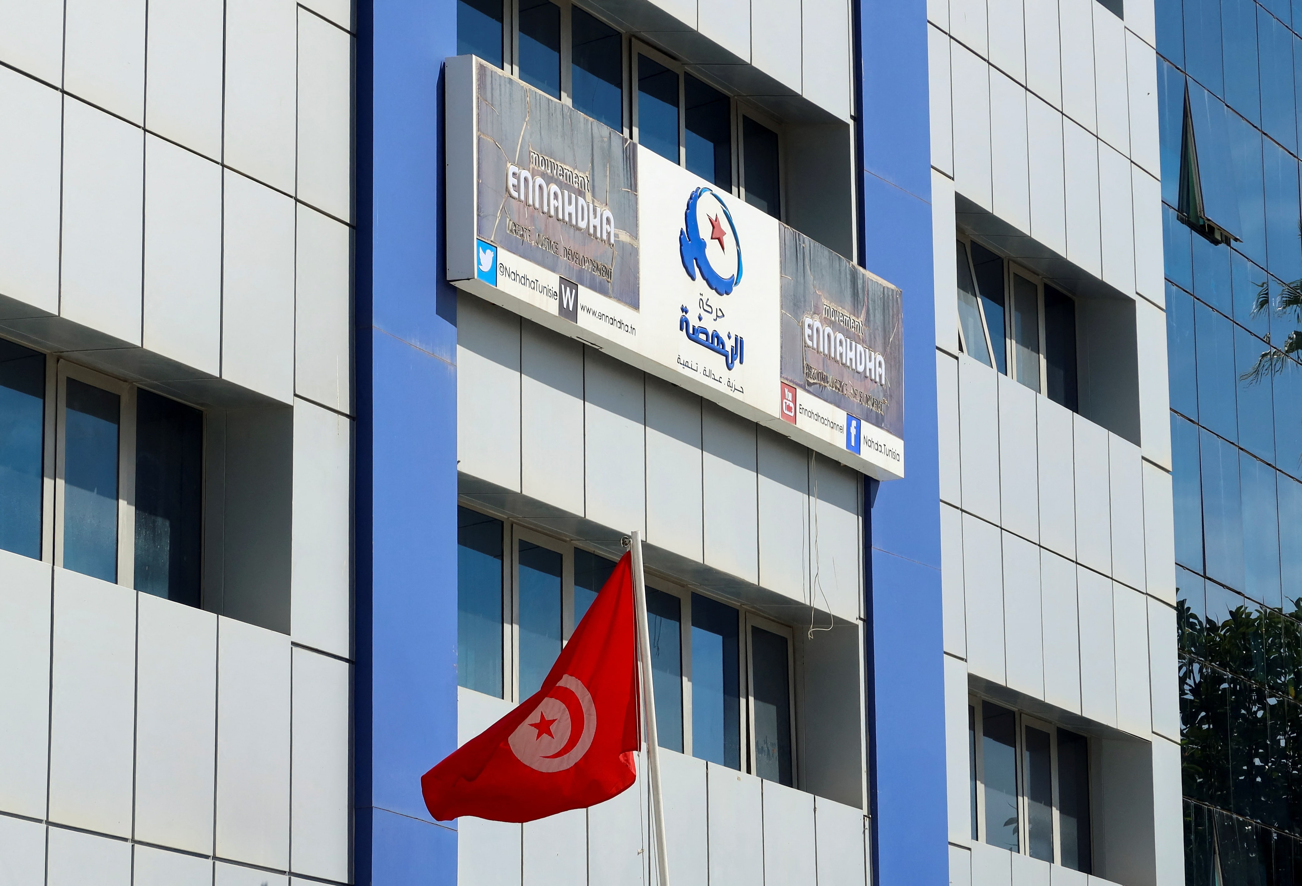 2023年4月18日,突尼斯國旗在突尼斯市復興運動黨總部大樓外飄揚。路透社/Jihed Abidellaoui/資料圖片購買授權權利,打開新標籤頁突尼斯,6月20日(路透社)——據其律師週五表示,突尼斯法院以洗錢罪名判處該國主要反對黨復興運動黨高級官員薩赫比·阿提格15年監禁,這是總統凱斯·賽義德執政期間針對反對派人士的最新打壓行動。阿提格於2023年被拘留,自2021年賽義德總統開始擴大權力、解散議會並通過法令統治以來,他是眾多被監禁的反對者之一,批評者稱此舉為政變。