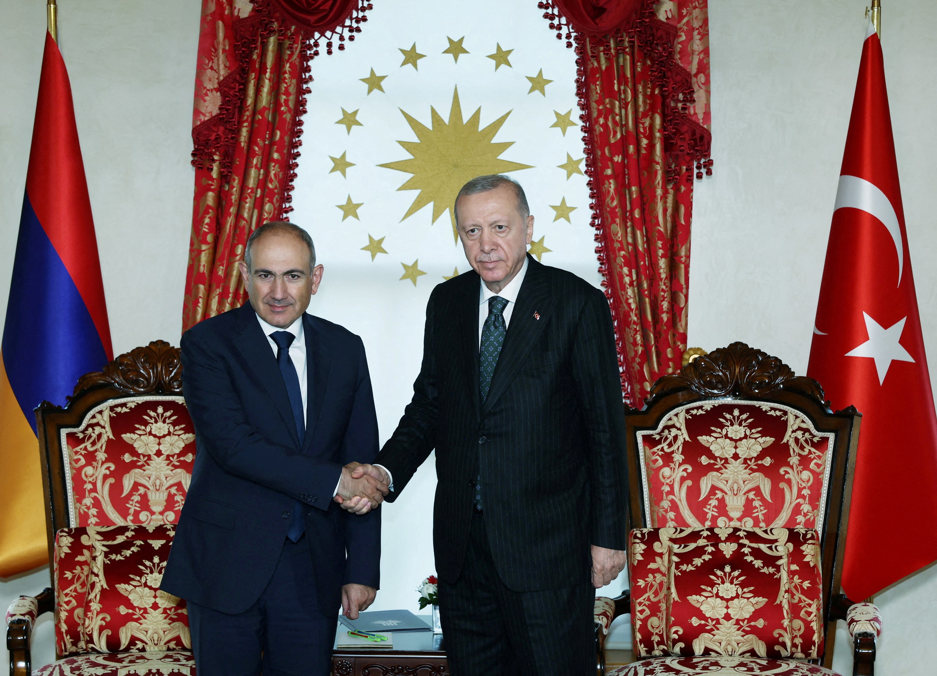 2025年6月20日,土耳其總統埃爾多安在伊斯坦布爾會晤亞美尼亞總理帕希尼揚。照片由總統新聞辦公室通過路透社提供購買授權許可,打開新標籤頁路透社伊斯坦布爾6月20日電——埃爾多安總統辦公室表示,總統週五會見了亞美尼亞總理帕希尼揚,並稱土耳其將支持亞美尼亞與阿塞拜疆的和平進程。此次罕見雙邊會晤中,兩國領導人還探討了土亞關係正常化的可能步驟。