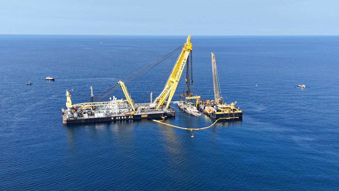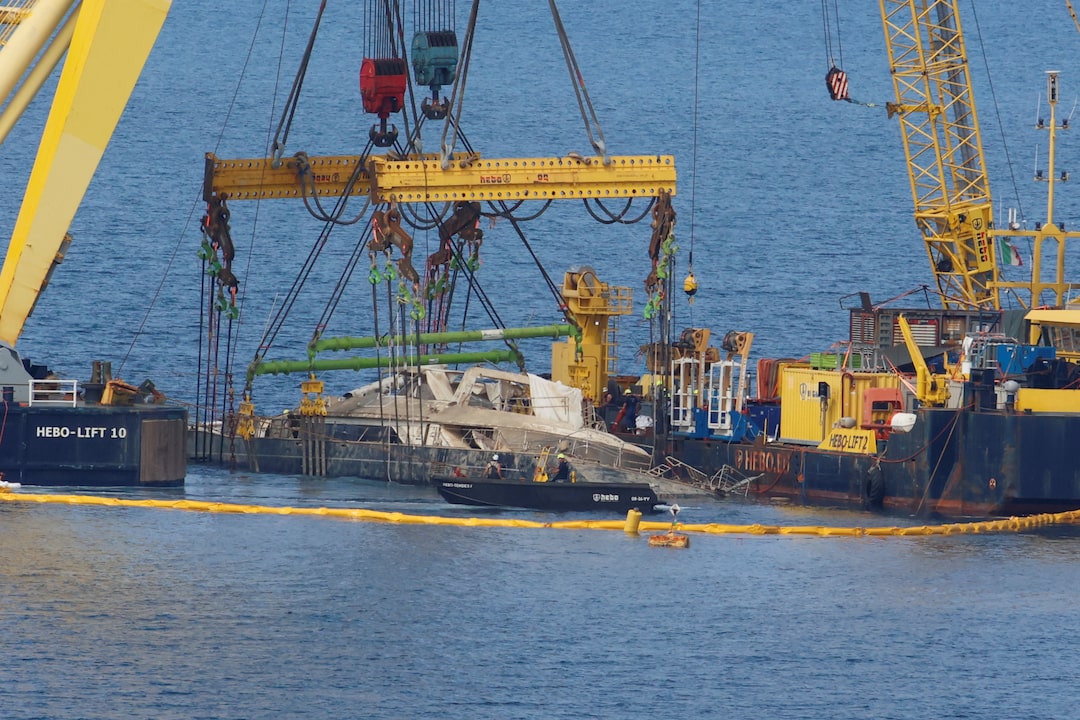 5項中的第1項 2025年6月21日,在意大利西西里島巴勒莫附近的波爾蒂切洛海岸,浮吊船HEBO LIFT 10和HEBO LIFT 2打撈已故英國科技企業家邁克·林奇的“貝葉斯”號遊艇殘骸時,海水正從殘骸中被抽出。路透社/Igor Petyx