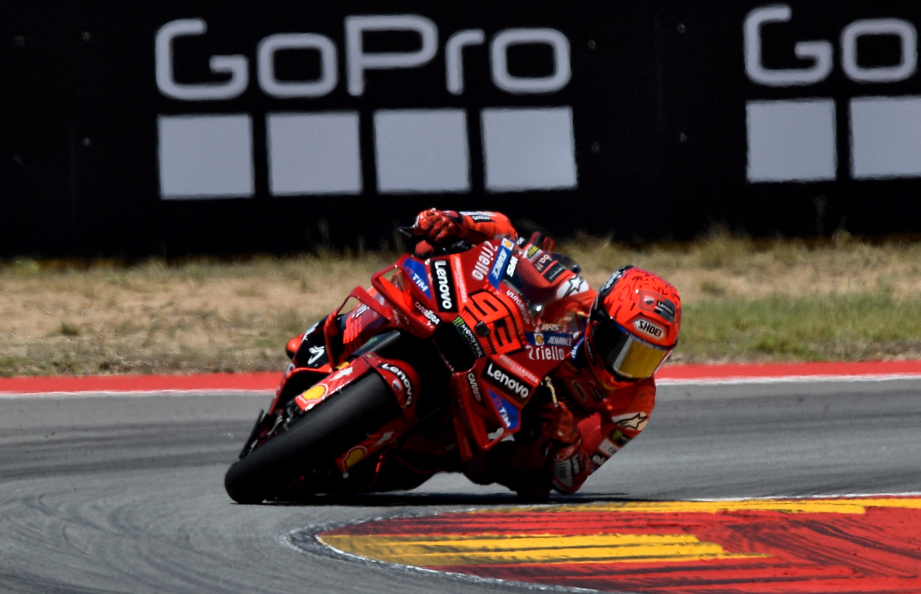 馬克·馬克斯在2025年6月8日西班牙站比賽中駕駛杜卡迪賽車的畫面。攝影:巴勃羅·莫拉諾 - 路透社購買授權許可,打開新標籤頁(阿拉伯路透體育服務 6月21日電)從杆位發車的馬克·馬克斯克服糟糕起步,在週六舉行的意大利摩托車大獎賽衝刺賽中擊敗弟弟亞歷克斯和隊友弗朗西斯科·巴尼亞亞,延續了本賽季對沖刺賽的統治地位。