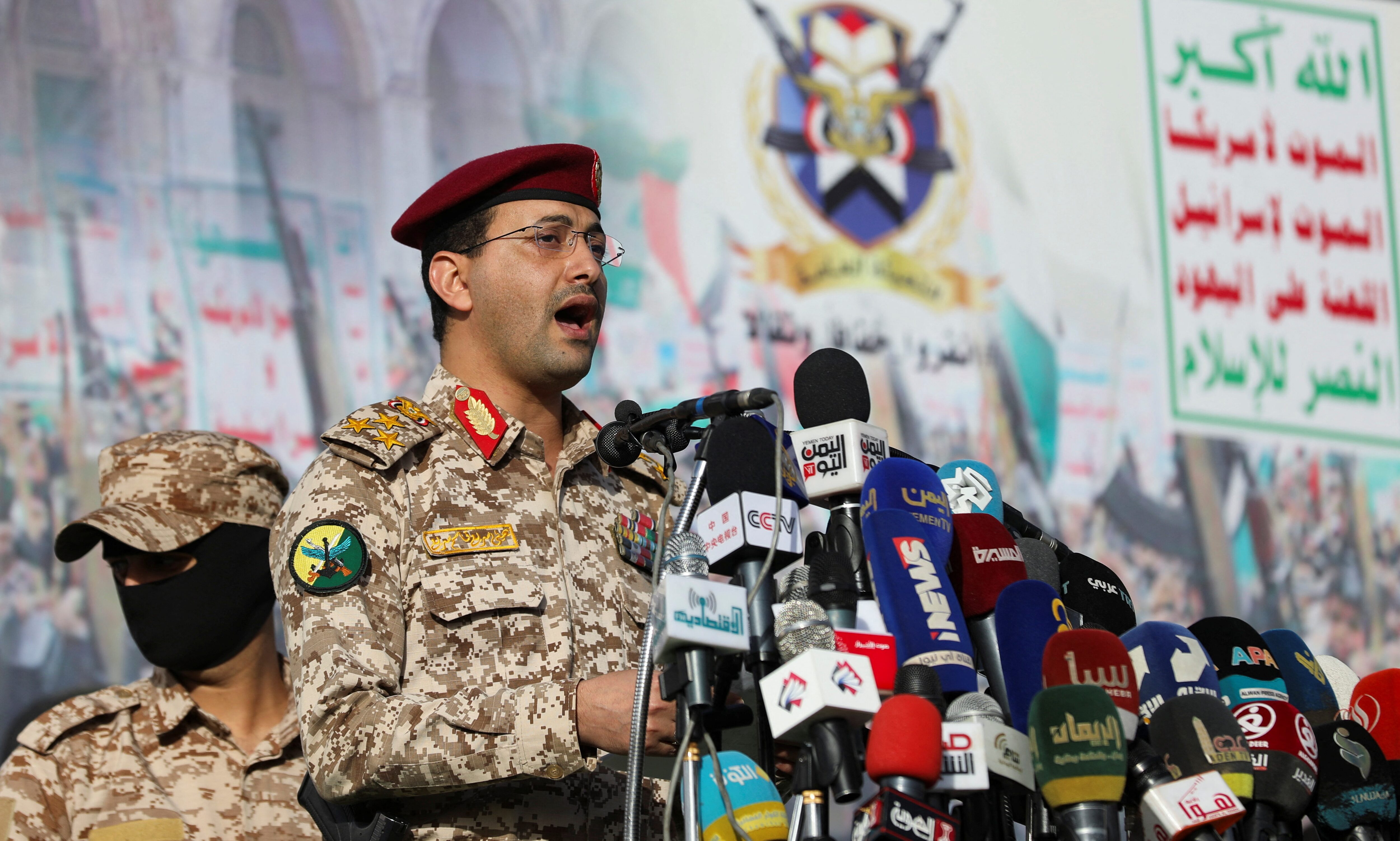 胡塞武裝軍事代表葉海亞·薩里亞於2025年1月3日在也門薩那發表講話。攝影:哈立德·阿卜杜拉 - 路透社購買授權許可,打開新標籤頁2025年6月21日路透社電 - 也門胡塞武裝軍事發言人週六通過電視台發表聲明稱,若美國參與以色列對伊朗的襲擊,該組織將針對紅海上的美國船隻。