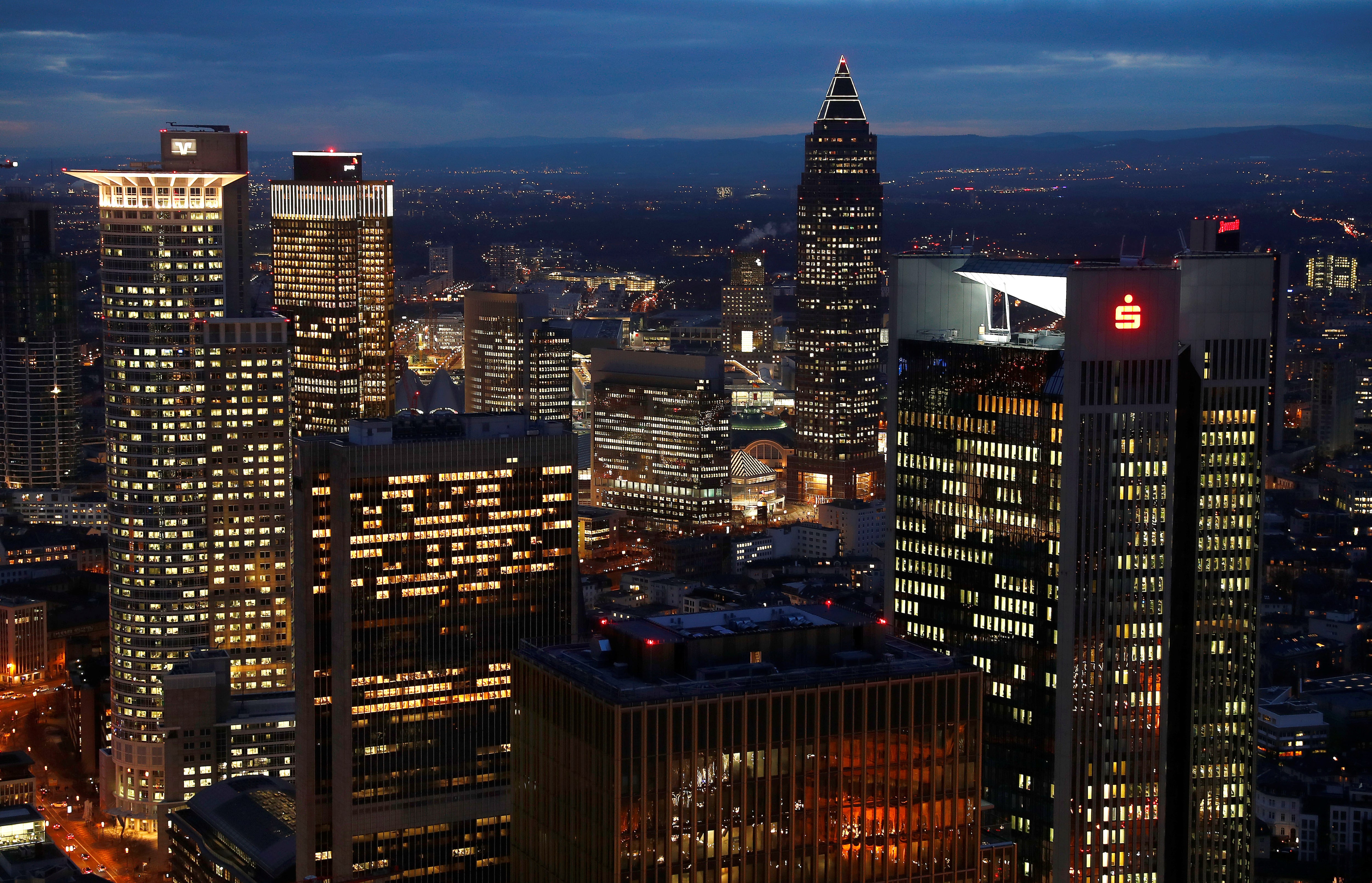 2019年1月29日傍晚,德國法蘭克福金融區一景。路透社/凱·普法芬巴赫/資料圖片購買授權許可,打開新標籤頁路透柏林6月24日電 - 週二公佈的調查顯示,德國6月企業信心指數超預期改善,其中企業對未來前景的評估顯著提升。