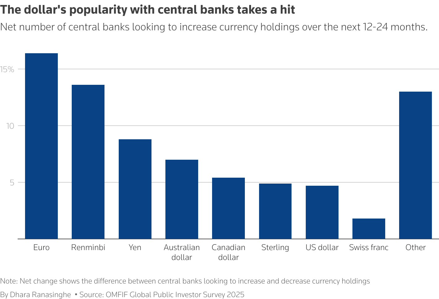 獨家:隨着美元主導地位減弱,各國央行關注黃金、歐元和人民幣 | 路透社