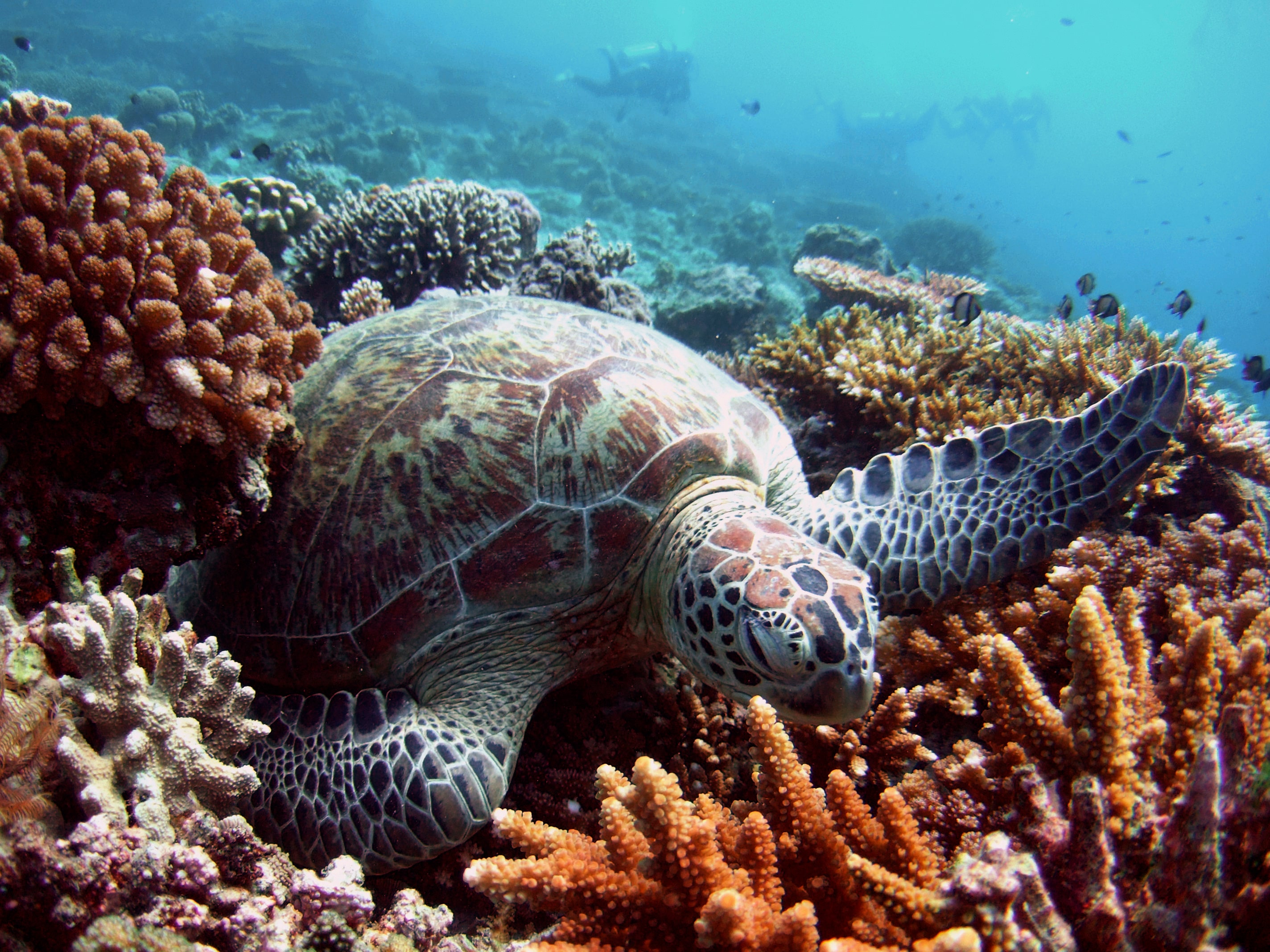 一隻綠海龜棲息在珊瑚叢中。印度尼西亞政府已宣佈發行珊瑚礁債券。路透社/大衞·羅其他創新機制也在嘗試中。印度尼西亞政府宣佈發行全球首隻珊瑚礁債券,該債券將根據保護成效向私人投資者支付收益。保護成效將以珊瑚礁魚類生物量的改善作為衡量標準,這是珊瑚礁健康狀況的替代指標。