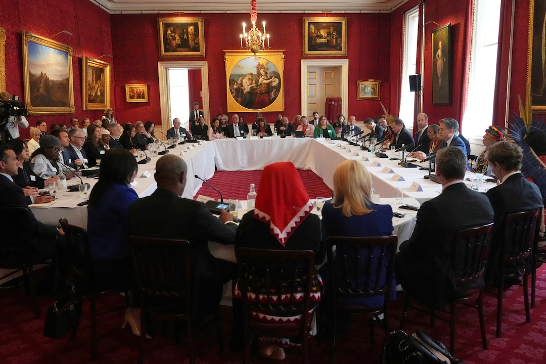 3項中的第1項 威爾士親王威廉作為皇家基金會"聯合保護野生動物"項目的創始人,於2025年6月26日在英國倫敦聖詹姆斯宮參加題為"自然的守護者:通往COP30及未來之路"的高級別圓桌會議時,會見了來自阿馬帕的卡里普納人原住民領袖克萊伯·卡里普納、沙巴州立法議會前成員詹妮弗·拉辛邦,以及全球領土社區聯盟秘書長鬍安·卡洛斯·金蒂亞克。 弗蘭克·奧格斯汀/路透社