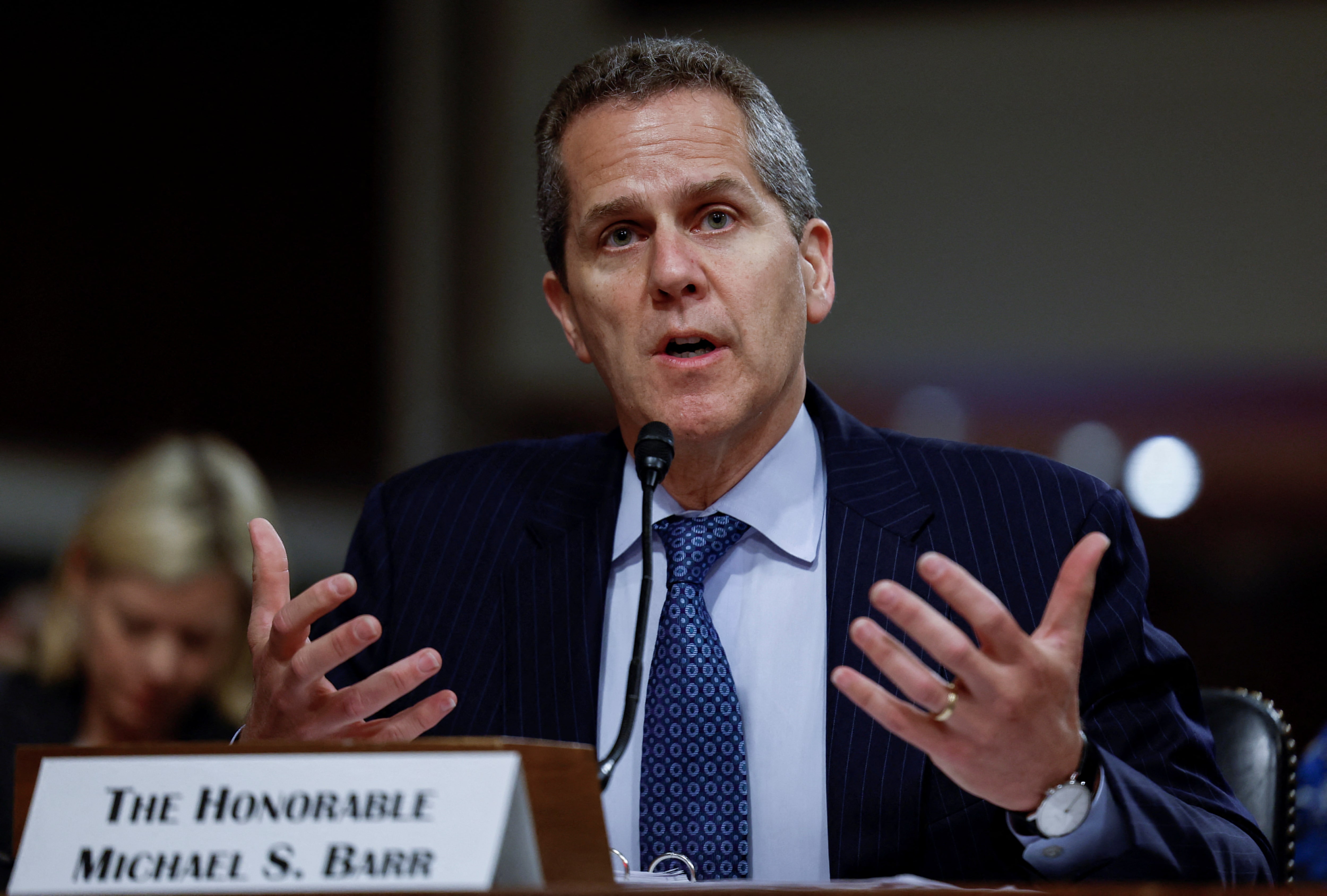 2023年5月18日,美國華盛頓國會山,美聯儲監管副主席邁克爾·巴爾在參議院銀行、住房和城市事務委員會聽證會上作證。路透社/伊芙琳·霍克斯坦/資料圖片購買授權許可,打開新標籤頁6月26日(路透社)——美聯儲理事邁克爾·巴爾週四表示,美國央行需要確保銀行像對待其他風險一樣,管理和衡量與氣候相關的風險。
