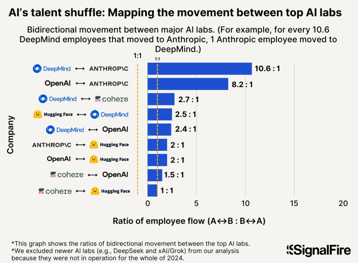 主要AI實驗室之間的雙向流動 主要AI實驗室之間的雙向流動