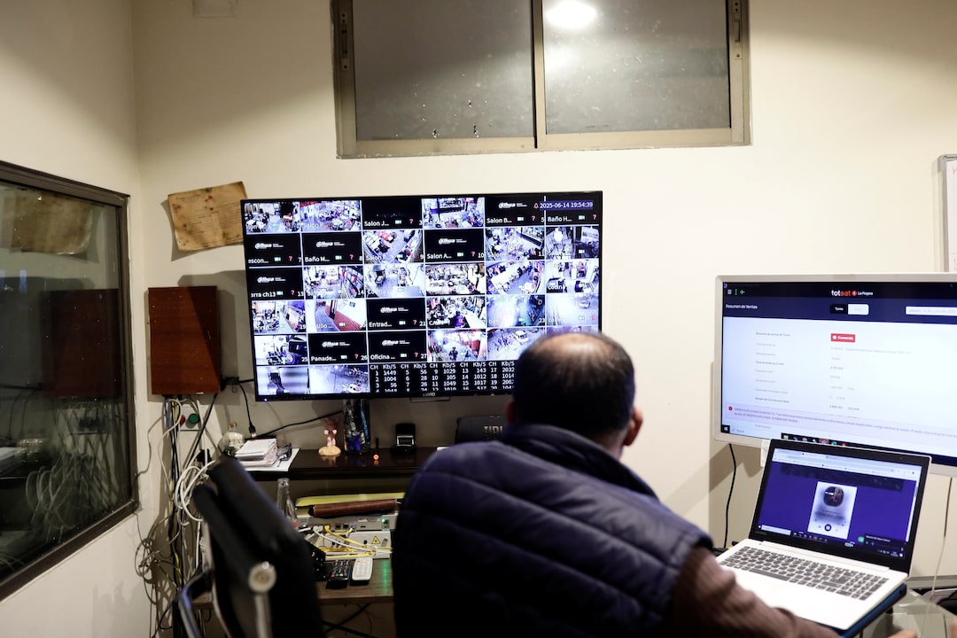 圖集1/5:2025年6月14日,智利聖地亞哥,La Piojera餐廳總經理毛裏西奧·加哈多正在查看監控畫面。路透社/胡安·岡薩雷斯