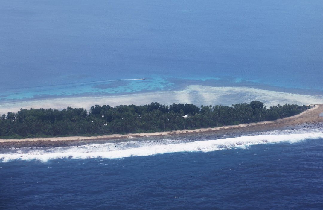 圖瓦盧人口最多的富納富提島航拍圖,2024年9月6日攝於飛機舷窗。路透社/Kirsty Needham/資料圖片