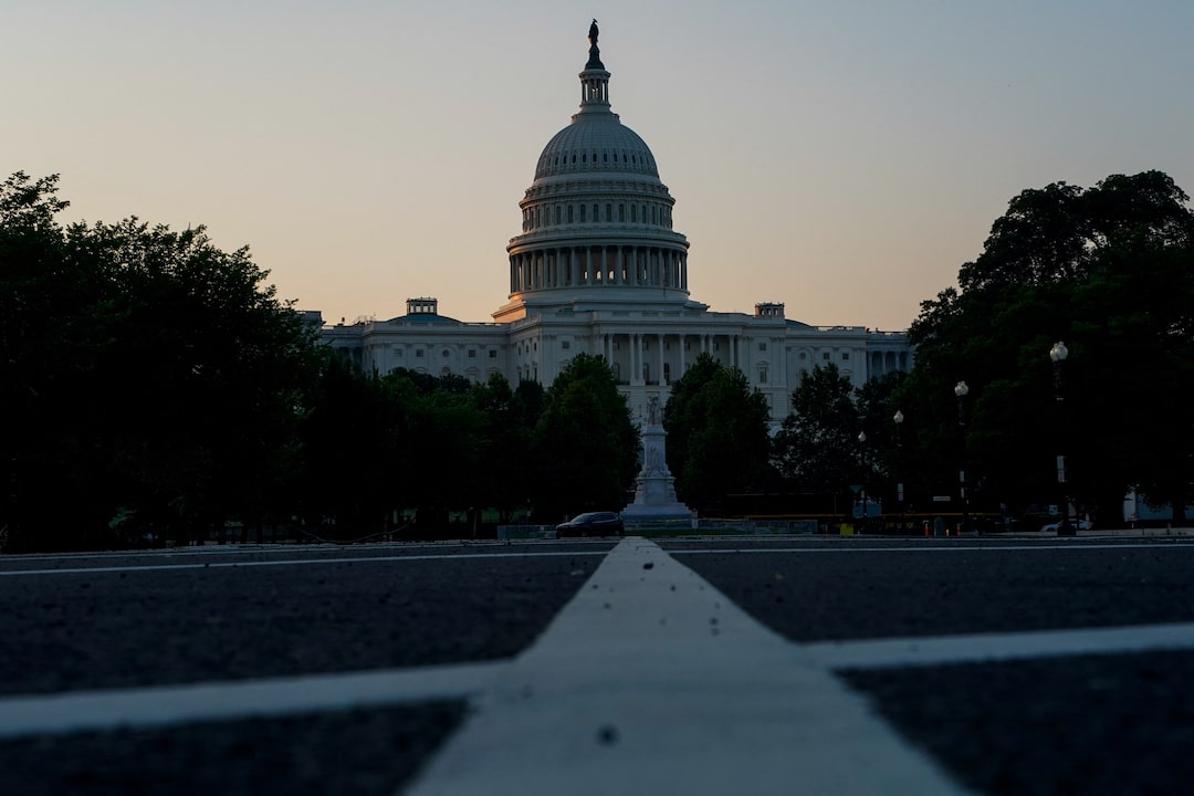 2025年6月29日,美國華盛頓特區國會山,日出後的美國國會大廈景觀,工作人員正在參議院會議廳繼續高聲宣讀美國總統唐納德·特朗普長達940頁的支出與税收法案。路透社/伊麗莎白·弗蘭茨 購買授權許可,打開新標籤頁華盛頓,6月29日(路透社)——無黨派的美國國會預算辦公室週日表示,唐納德·特朗普總統的大規模減税和支出法案將在十年內為國家債務帶來3.3萬億美元的增幅。