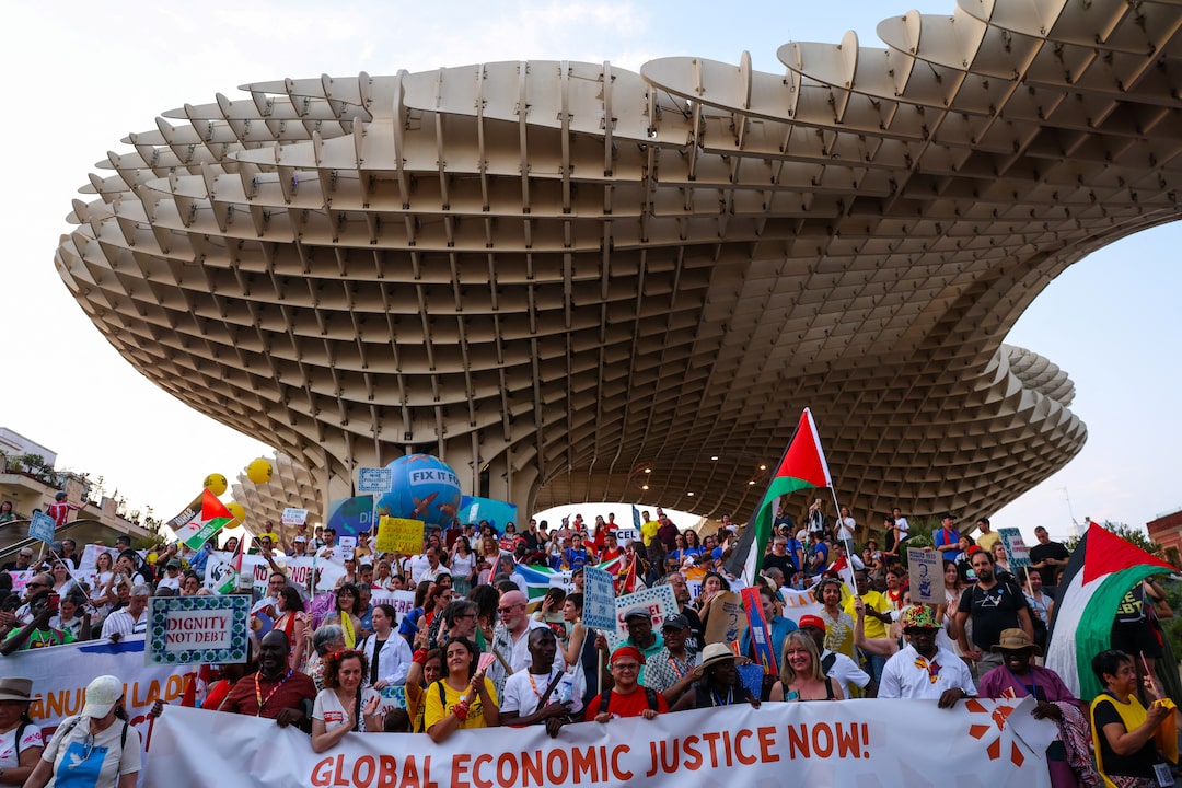2025年6月29日,西班牙塞維利亞,在第四屆發展籌資國際會議前夕,民眾參加遊行要求建立聯合國主導的主權債務解決框架。路透社/Claudia Greco 購買授權許可,打開新標籤頁路透社西班牙塞維利亞6月29日電 - 活動人士週日冒着酷暑在西班牙南部的塞維利亞遊行,在聯合國發展籌資峯會批評者認為這缺乏雄心和廣度。這場每十年舉行一次的四天會議——承諾通過制定全球發展框架來解決貧困、疾病和氣候變化問題。但美國決定退出(新標籤頁打開)以及富裕國家對外援助興趣的減弱,降低了人們對此次峯會能帶來重大變革的期望。路透社每日簡報為您提供開啓一天所需的全部新聞。立即註冊。