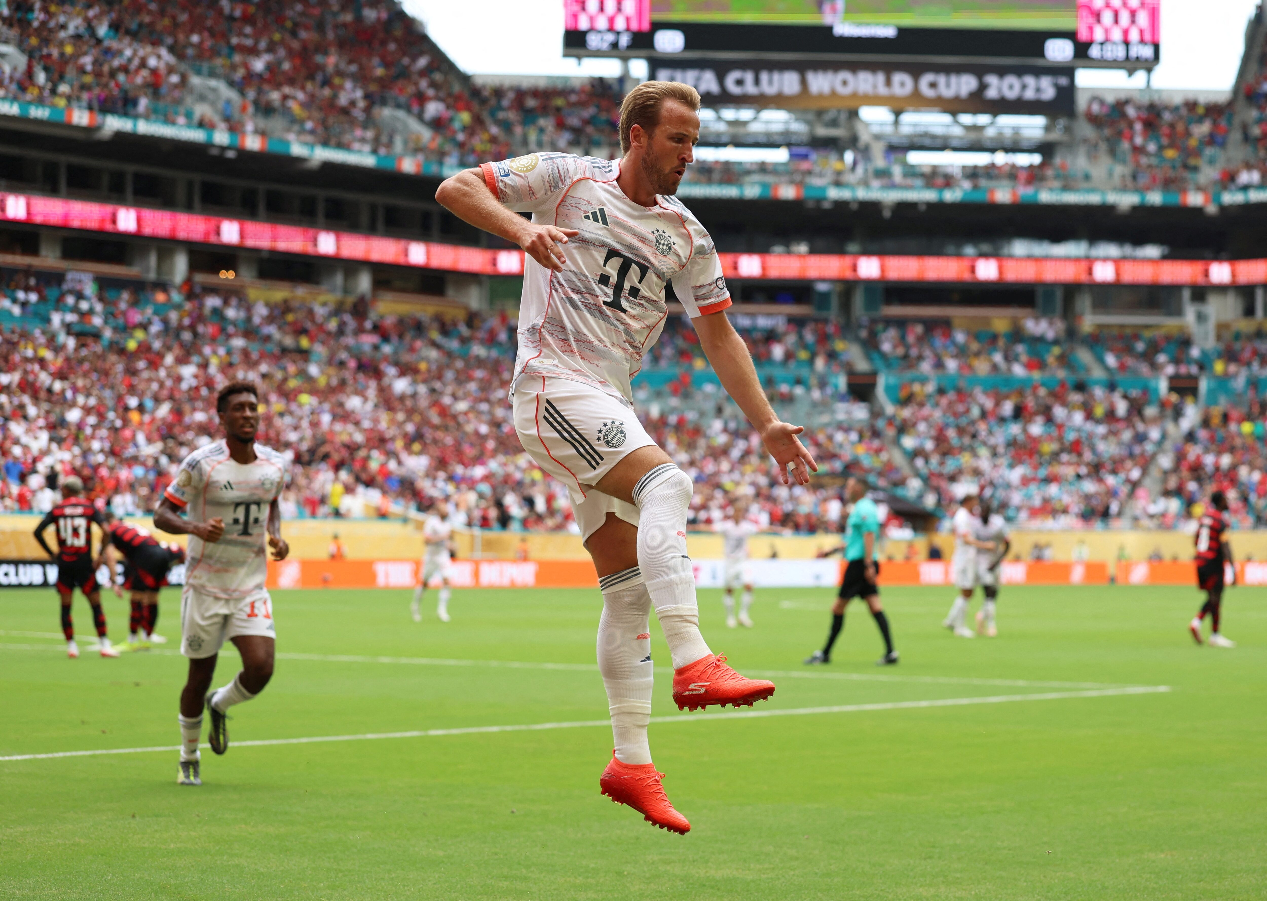 拜仁慕尼黑前鋒哈里·凱恩在週日世界俱樂部杯對陣弗拉門戈的比賽中慶祝攻入第二球。攝影:漢娜·麥凱 - 路透社購買授權權利,打開新標籤頁邁阿密6月29日(阿拉伯路透體育服務)——哈里·凱恩週日在對陣弗拉門戈的比賽中梅開二度,帶領拜仁慕尼黑在硬石體育場以4-2的比分贏得一場激動人心的比賽,並晉級在美國舉行的世界俱樂部杯八強賽,將與巴黎聖日耳曼展開一場純歐洲對決。