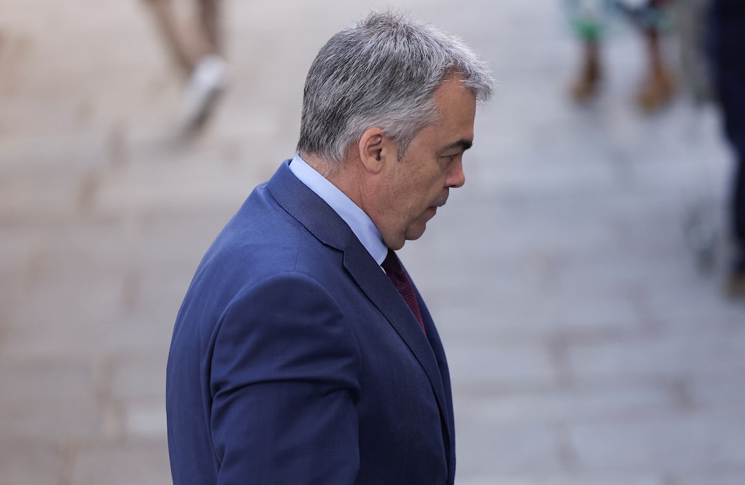 圖1/3:2025年6月30日,西班牙馬德里,前社會黨議員桑托斯·塞爾丹抵達最高法院,就一起涉嫌影響社會黨的腐敗案件向調查法官作證。路透社/胡安·梅迪納