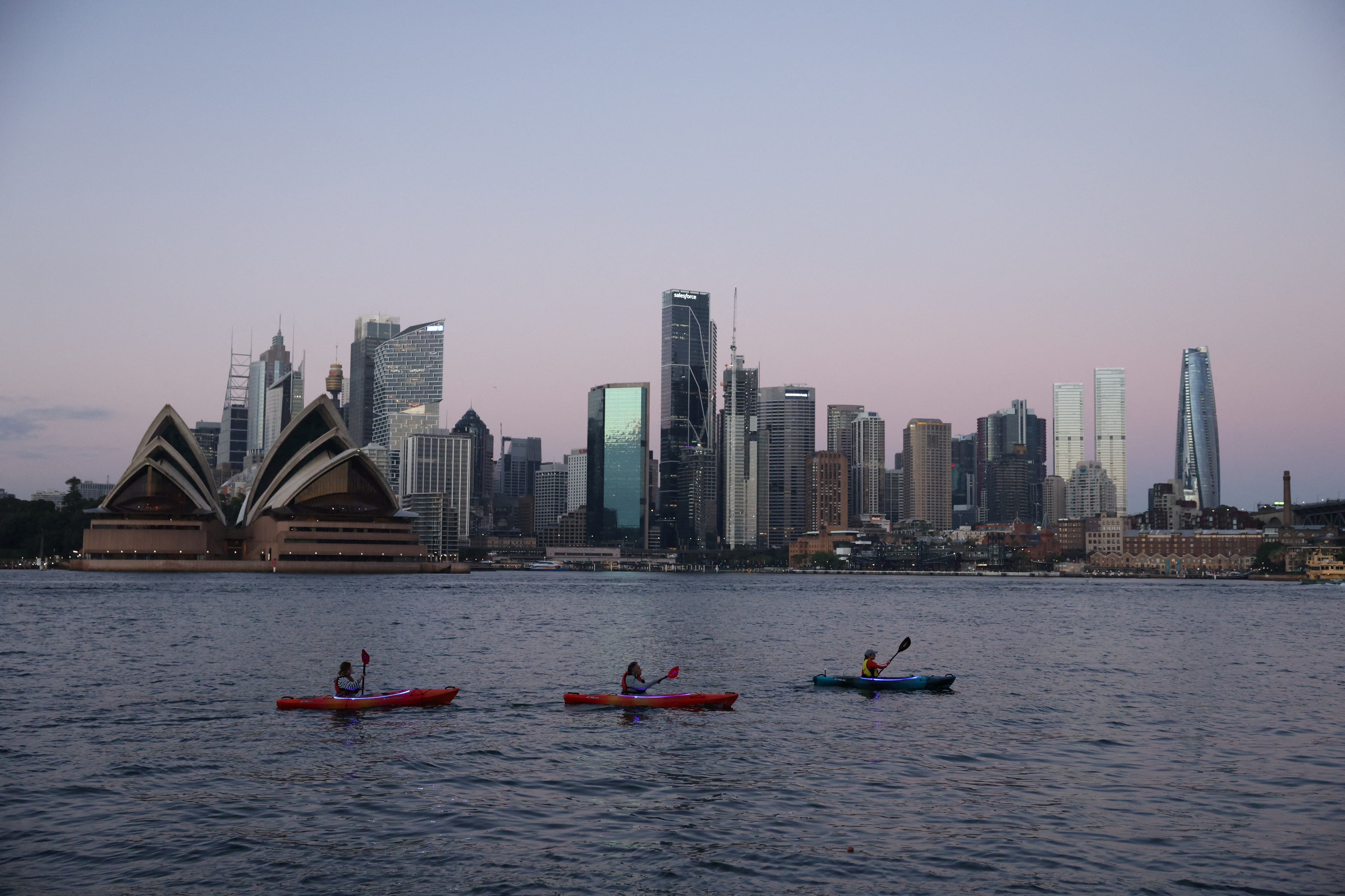 2025年4月29日,澳大利亞悉尼日出時分,皮划艇愛好者划槳經過悉尼歌劇院和中央商務區(CBD)天際線。路透社/Hollie Adams 購買授權許可,打開新標籤頁路透悉尼7月1日電 - 週二數據顯示,由於降息及未來可能進一步降息的預期提振了買家需求,而住房供應卻處於低位,澳大利亞6月房價躍升至又一歷史新高。
