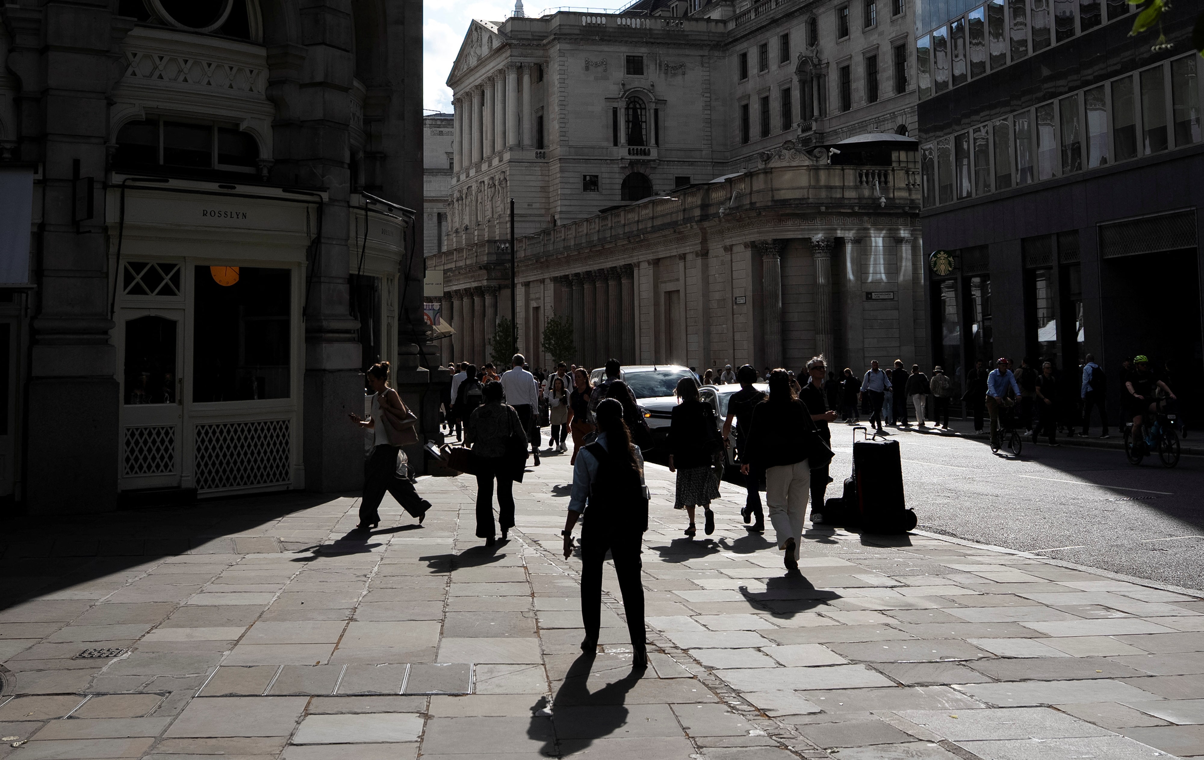 2025年6月24日,英國倫敦,人們走過英國央行大樓附近。路透社/Carlos Jasso/資料圖片購買授權許可,打開新標籤頁作者:Lawrence White 和 David Milliken