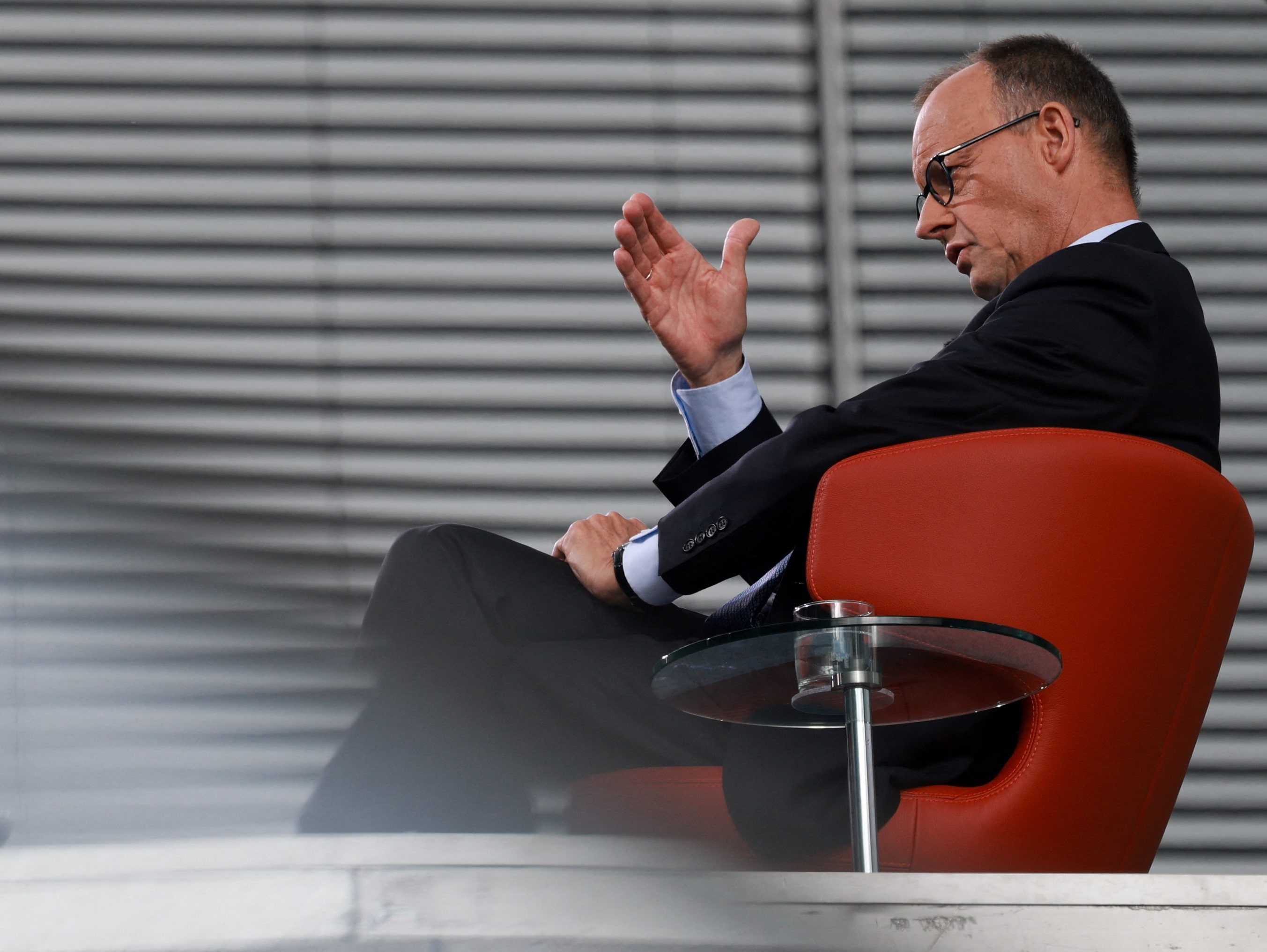 2025年7月13日,德國柏林,德國總理弗里德里希·梅爾茨在ARD夏季訪談節目中回答電視主持人馬庫斯·普賴斯(未在畫面中)的提問。路透社/法布里奇奧·本施 購買授權 權利,打開新標籤頁柏林,7月13日(路透社)——德國總理弗里德里希·梅爾茨和德國總統弗蘭克-瓦爾特·施泰因邁爾在憲法法院法官選舉問題上意見不一。總理在ARD夏季訪談中表示:“這沒有時間壓力”,他指的是週五在聯邦議院推遲的三位法官選舉。而施泰因邁爾則警告説,需要儘快行動。總統在ZDF夏季訪談中提醒道:“我遠非説這會損害聯邦憲法法院。只要在不久的將來做出決定,就不會有問題。如果不這樣做,我們就必須擔心了。”
