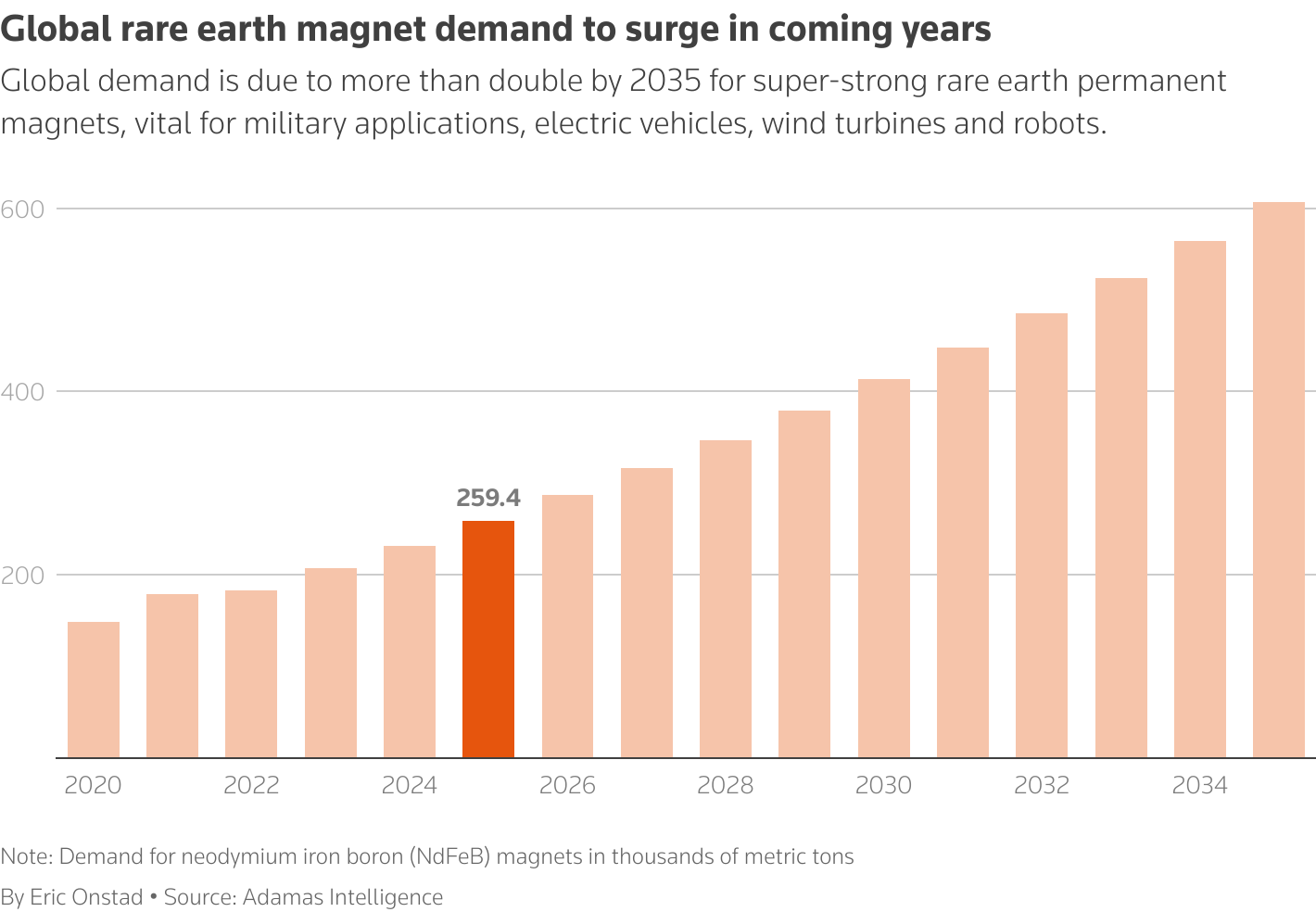 到2035年,超強稀土永磁體的全球需求預計將增長一倍以上