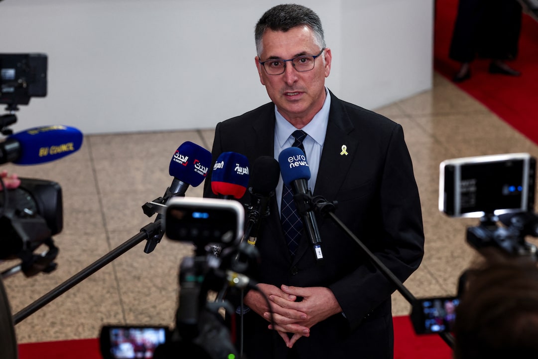 2025年7月14日,以色列外交部長吉迪恩·薩爾在比利時布魯塞爾出席第五屆歐盟-南部鄰國部長級會議時向媒體發表講話。路透社/Yves Herman