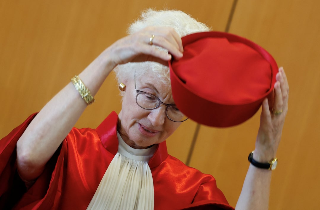 圖集1/2:德國聯邦憲法法院第二副院長多麗絲·柯尼希於2025年7月15日在卡爾斯魯厄宣佈對2012年美國從拉姆施泰因空軍基地指揮的也門無人機襲擊案作出裁決。路透社/海科·貝克爾
