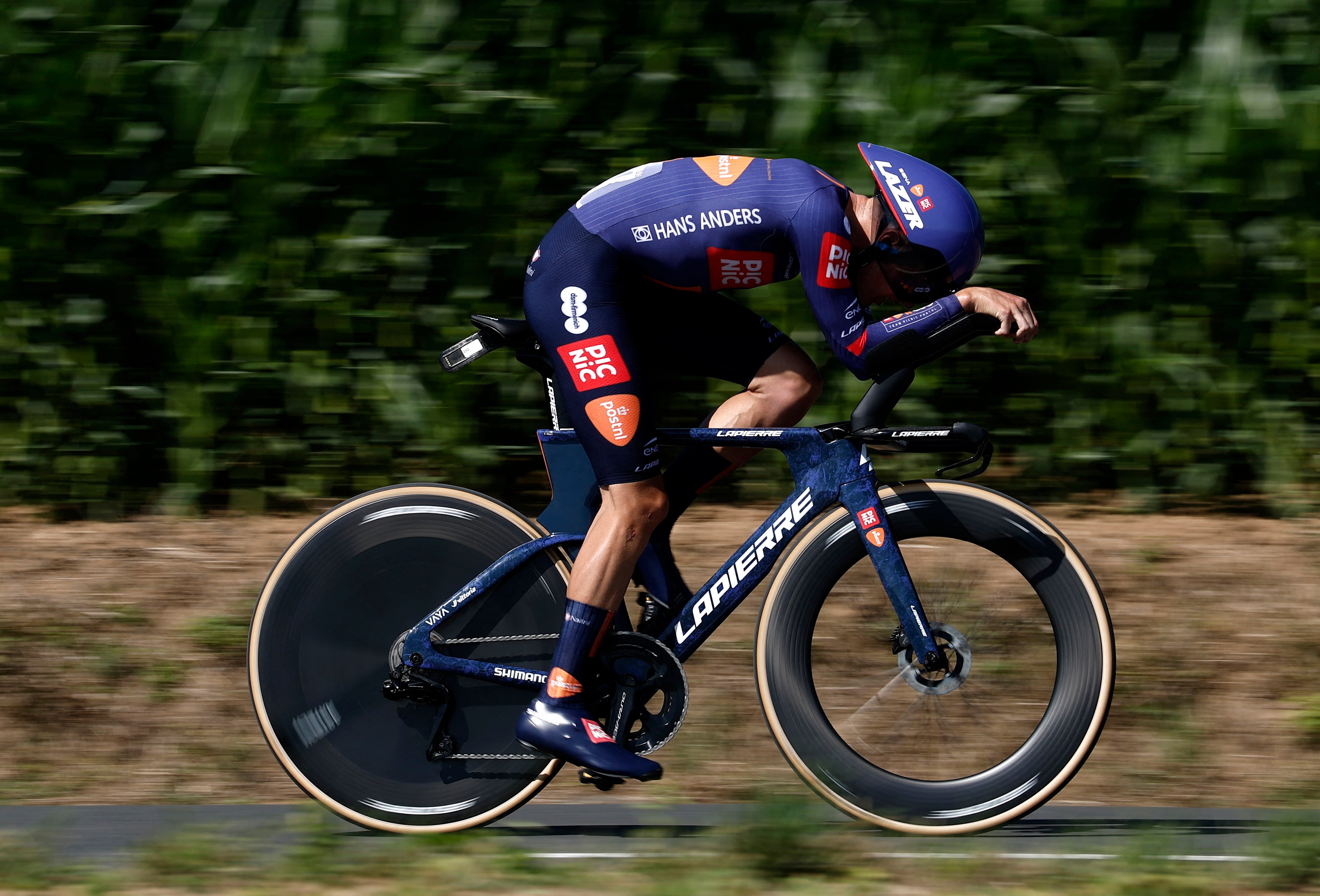 自行車 - 環法自行車賽 - 第5賽段 - 卡昂至卡昂 - 法國卡昂 - 2025年7月9日 Picnic PostNL車隊奧斯卡·昂利在第5賽段個人計時賽中騎行 路透社/Benoit Tessier/資料圖片 購買授權許可,打開新標籤頁法國圖盧茲7月15日(路透社) - 蘇格蘭車手奧斯卡·昂利在環法自行車賽首周表現亮眼,這位年僅22歲的選手在完成10個賽段後總成績暫列第七。