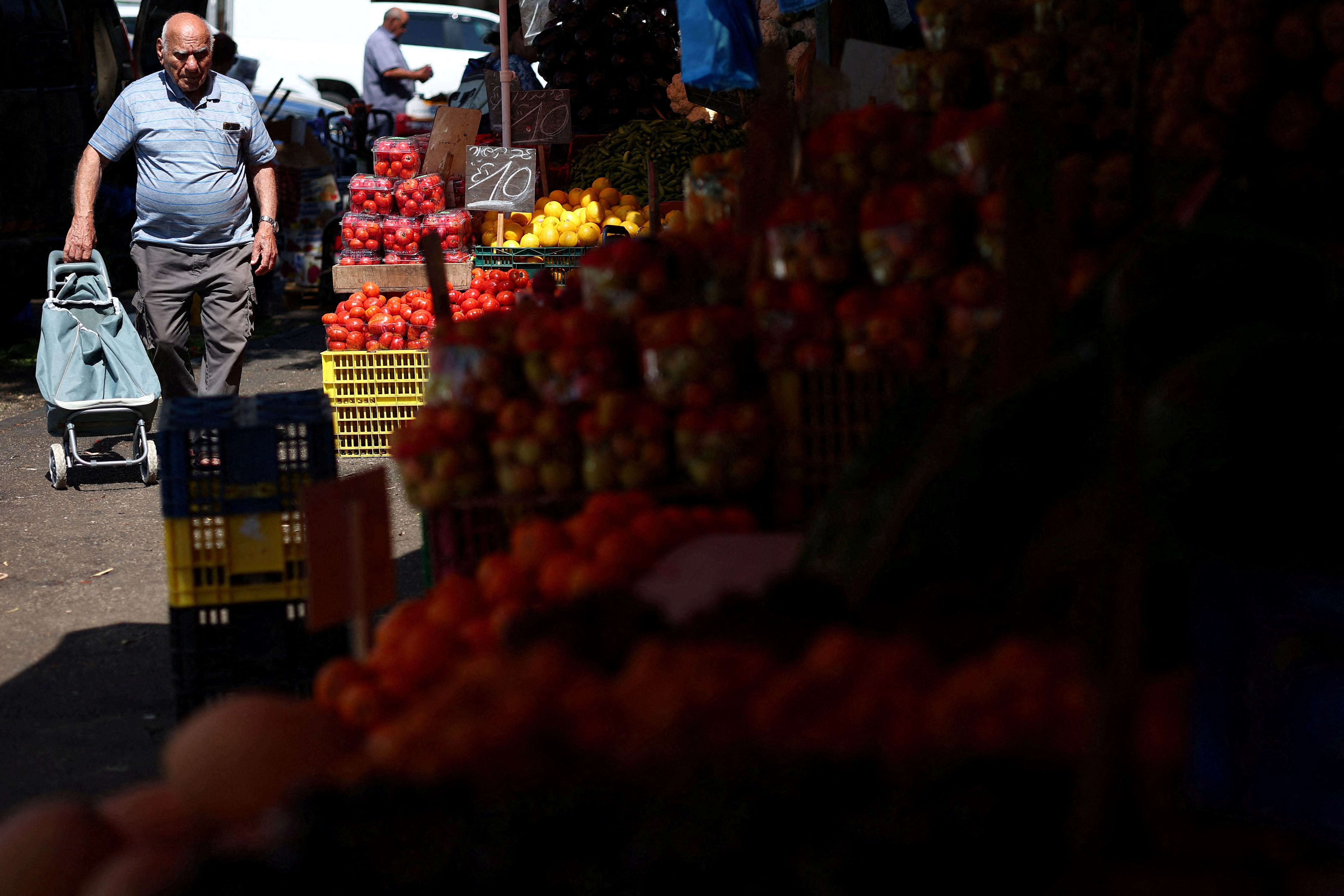 2025年6月24日,以色列海法某市場中行走的路人。攝影:弗洛裏安·戈加 - 路透社購買授權許可,打開新標籤頁耶路撒冷7月15日電(路透社) - 以色列中央統計局宣佈,6月年通脹率從5月的3.1%上升至3.3%,這一比率可能使政策制定者近期難以降息。