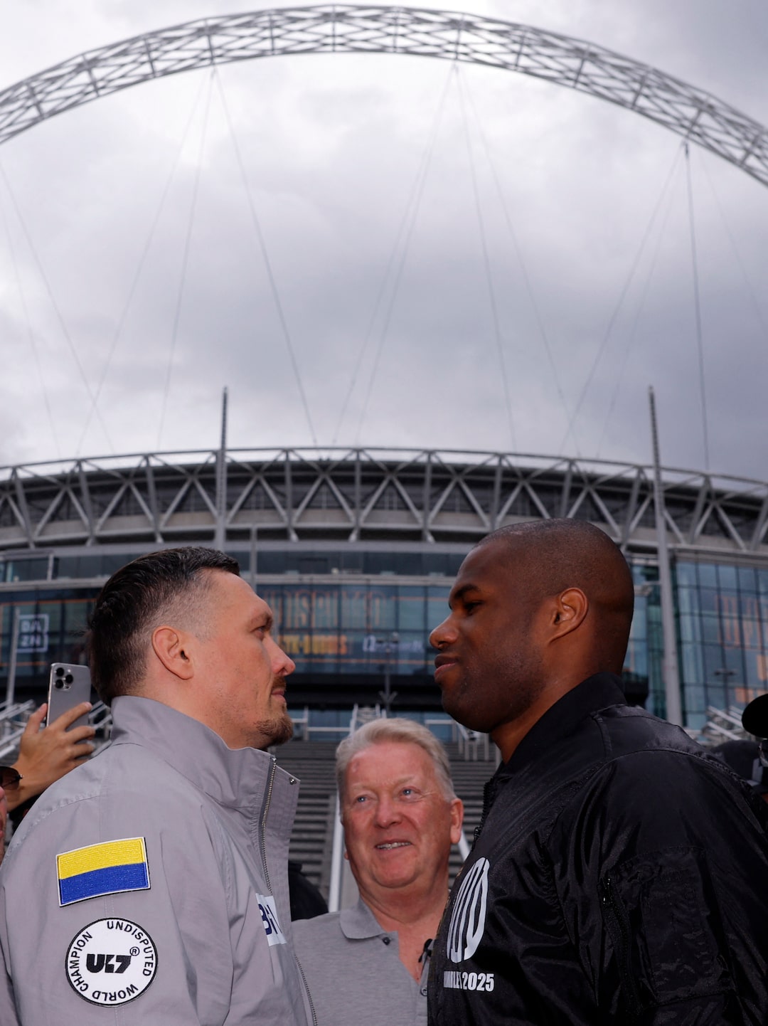 圖集1/5 拳擊 - 奧列克桑德·烏西克 vs 丹尼爾·杜布瓦 - 賽前拍照 - 英國倫敦温布利球場 - 2025年7月15日 奧列克桑德·烏西克與丹尼爾·杜布瓦在賽前擺姿 路透社行動圖片/Andrew Couldridge