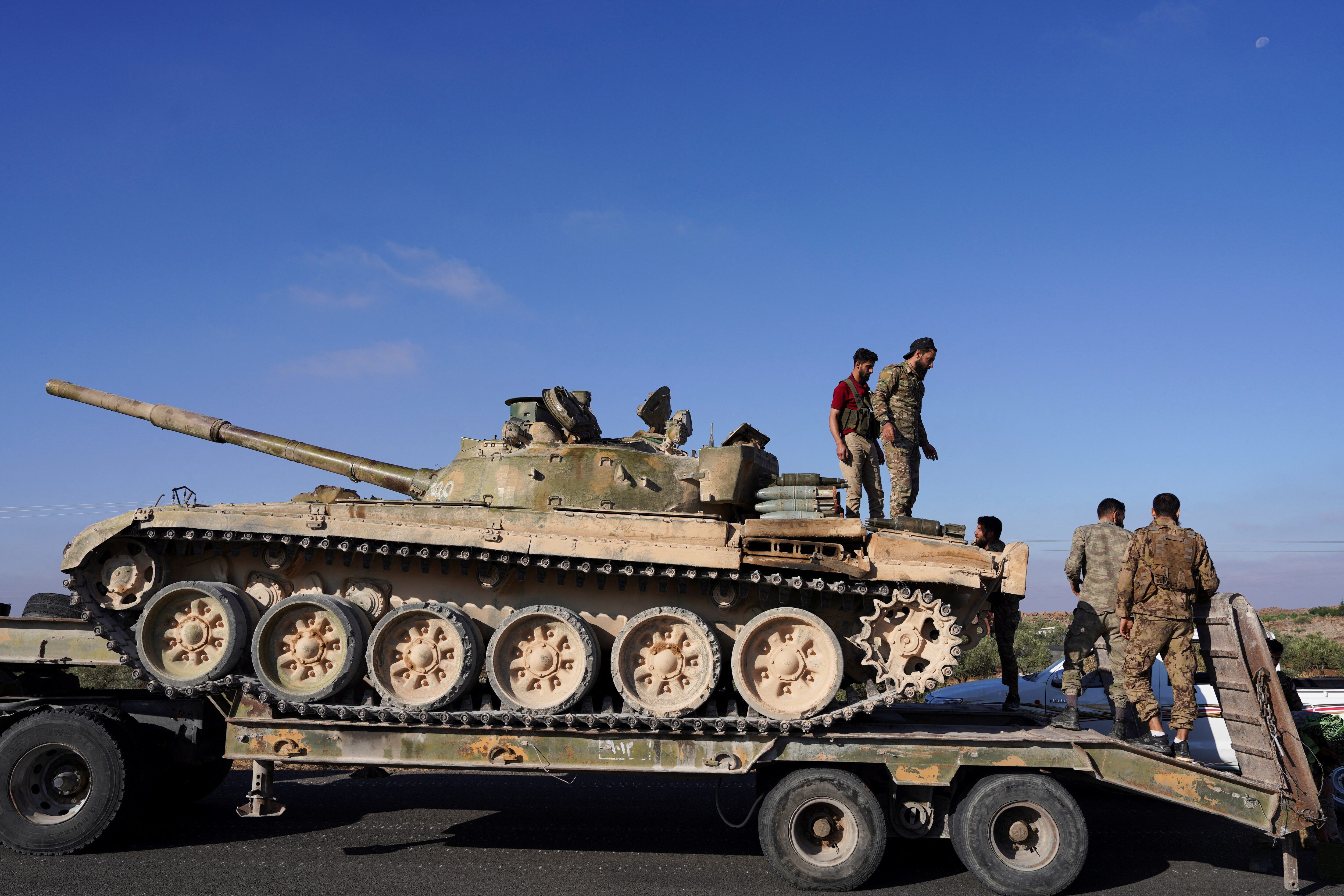 敍利亞安全部隊成員站在軍用車輛上,在2025年7月15日進入以德魯茲人為主的蘇韋達市後。攝影:卡里姆·阿爾-馬斯里 - 路透社購買授權權利,打開新標籤頁2025年7月16日(路透社)——敍利亞總統艾哈邁德·謝拉阿重新統一國家在其伊斯蘭主義者領導的政府旗幟下的希望因該國的教派和種族混合而變得複雜。