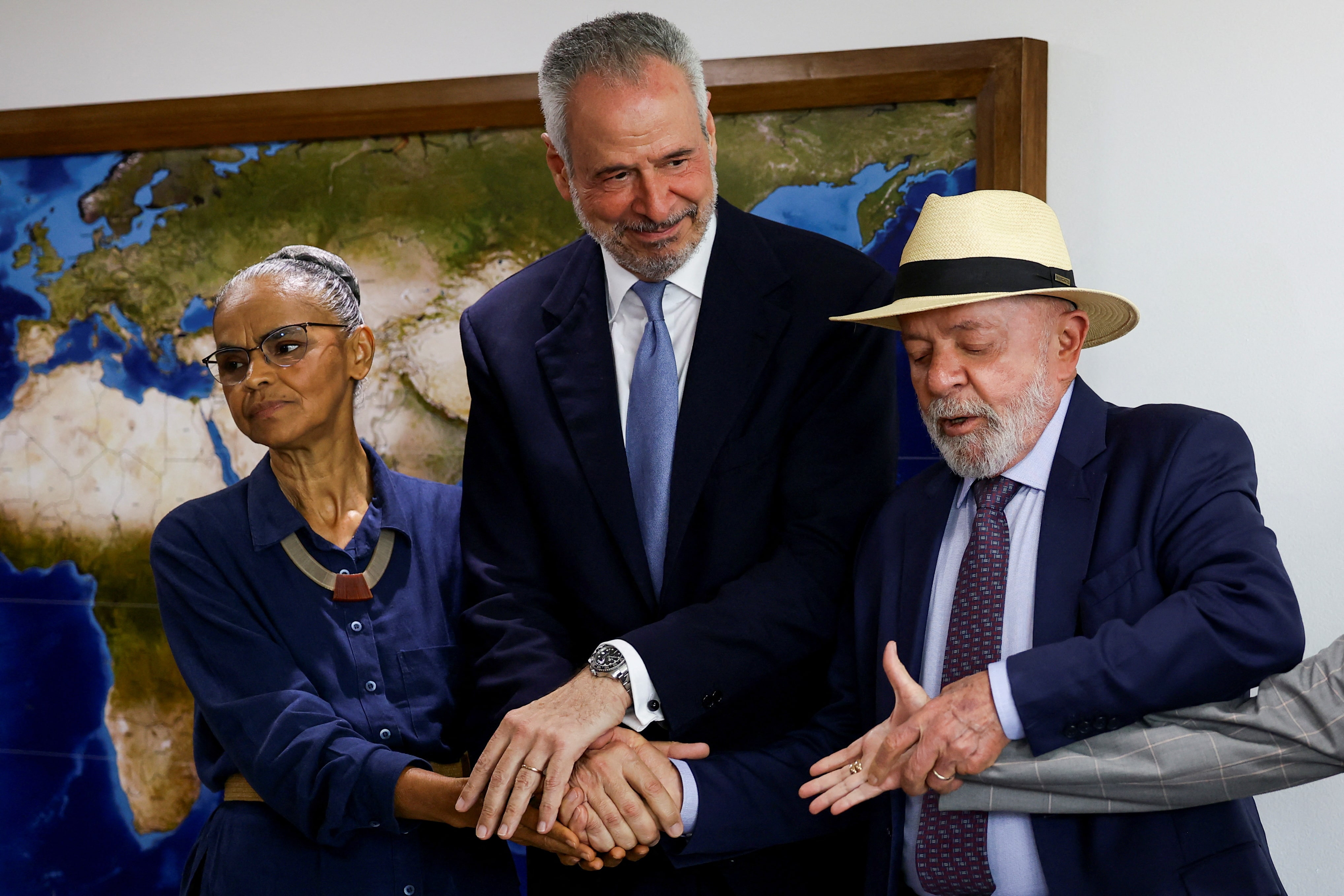 2025年1月21日,巴西環境部長瑪麗娜·席爾瓦與總統路易斯·伊納西奧·盧拉·達席爾瓦在巴西利亞普拉納爾託宮宣佈安德烈·科雷亞·多拉戈擔任聯合國氣候大會COP30主席。路透社/烏埃斯萊·馬塞利諾 購買授權 許可,打開新標籤頁7月16日 - 隨着聯合國第30屆氣候大會COP30將於今年11月在巴西貝倫召開,各國從線性經濟向循環經濟轉型的需求比以往任何時候都更加緊迫。